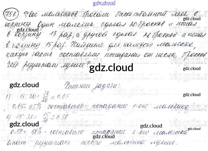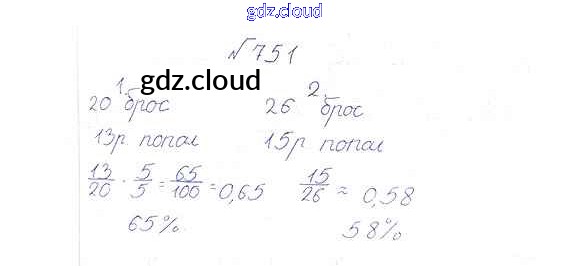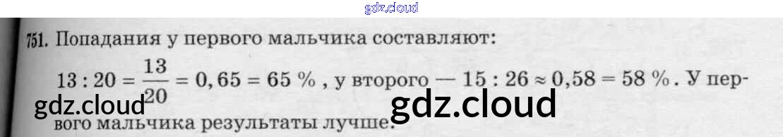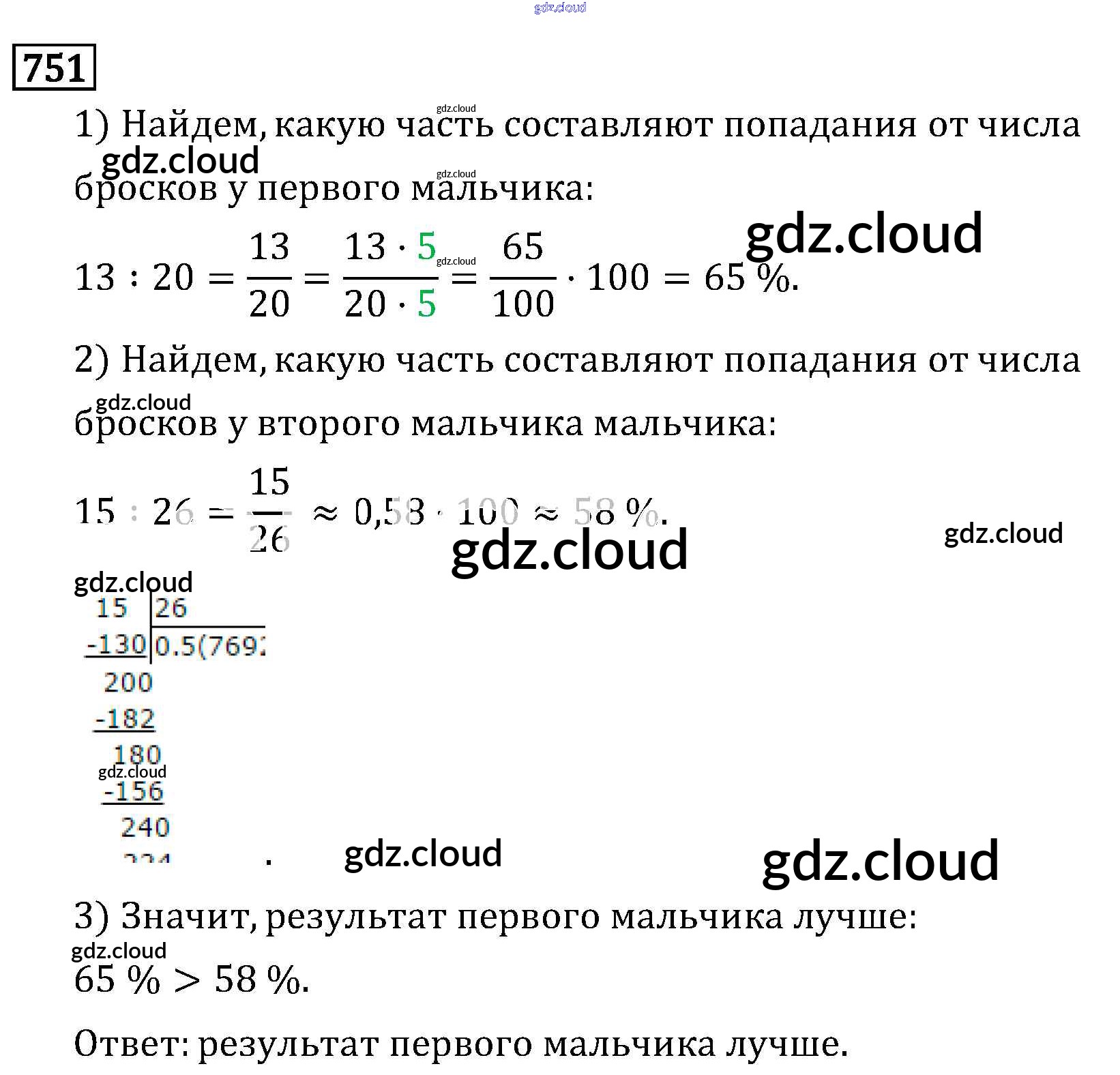 Ответ на задание 751 Учебник Математика за 6 (шестой) класс Виленкин, Жохов, Чесноков, Шварцбурд 2014