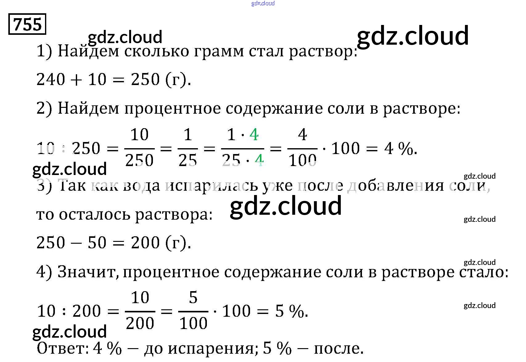 Ответ на задание 755 Учебник Математика за 6 (шестой) класс Виленкин, Жохов, Чесноков, Шварцбурд 2014
