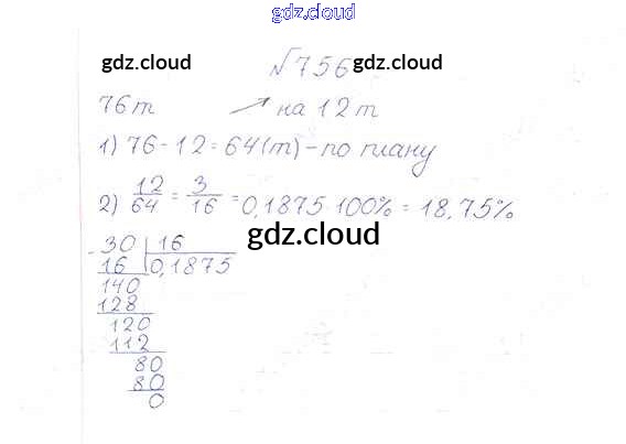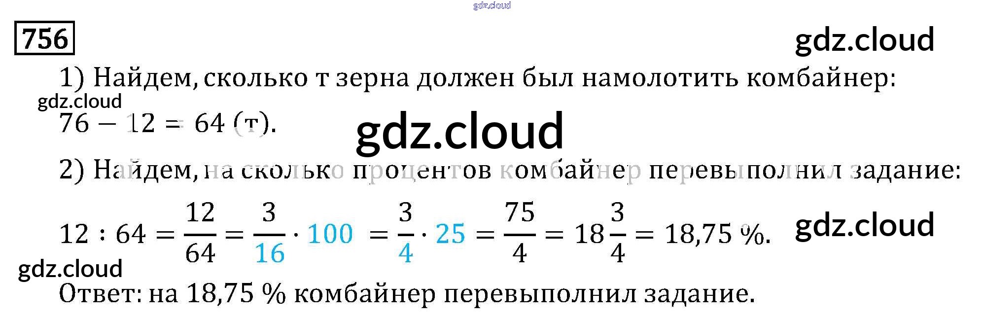 Ответ на задание 756 Учебник Математика за 6 (шестой) класс Виленкин, Жохов, Чесноков, Шварцбурд 2014