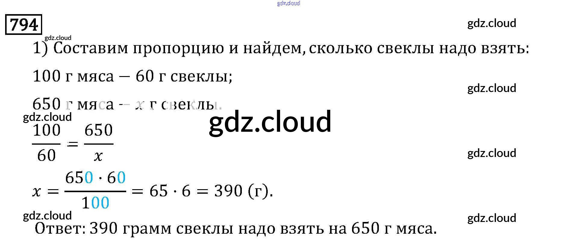 Ответ на задание 794 Учебник Математика за 6 (шестой) класс Виленкин, Жохов, Чесноков, Шварцбурд 2014