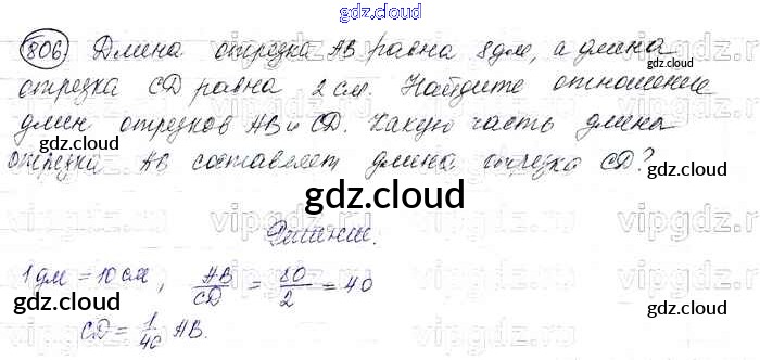 Ответ на задание 806 Учебник Математика за 6 (шестой) класс Виленкин, Жохов, Чесноков, Шварцбурд 2014