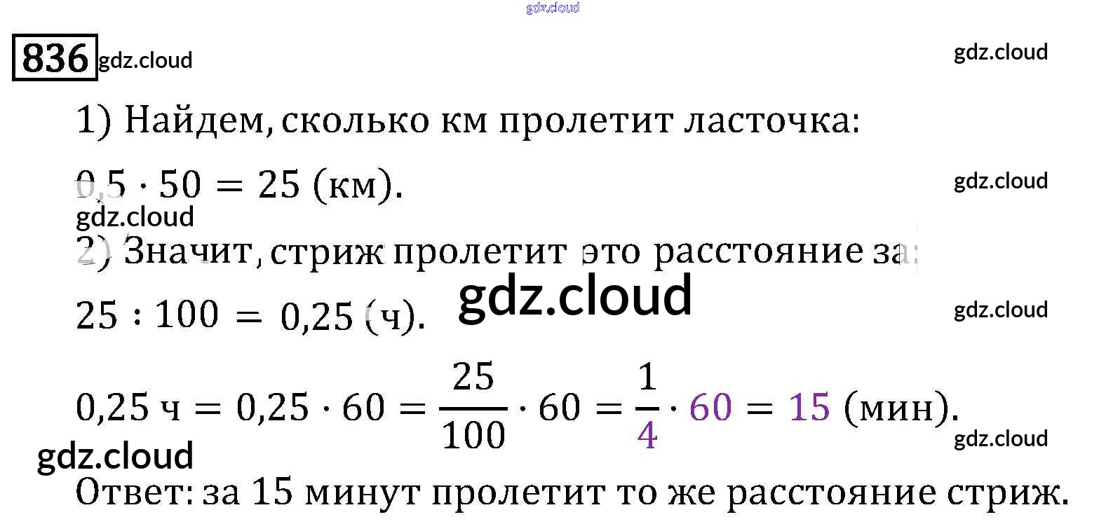 Ответ на задание 836 Учебник Математика за 6 (шестой) класс Виленкин, Жохов, Чесноков, Шварцбурд 2014