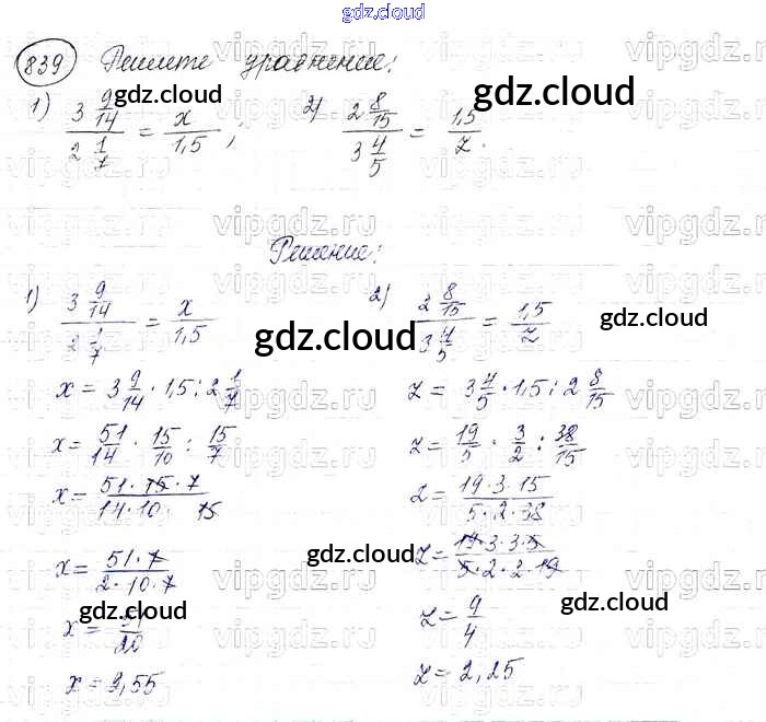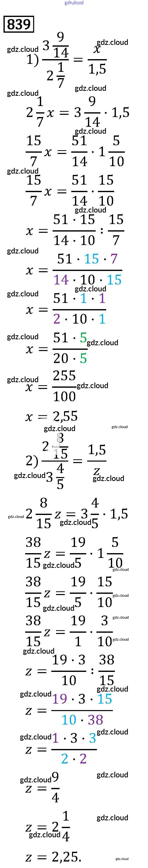 Ответ на задание 839 Учебник Математика за 6 (шестой) класс Виленкин, Жохов, Чесноков, Шварцбурд 2014