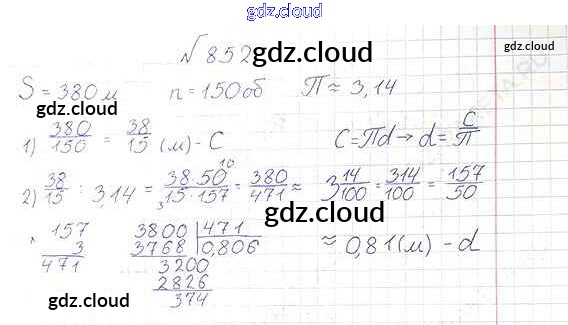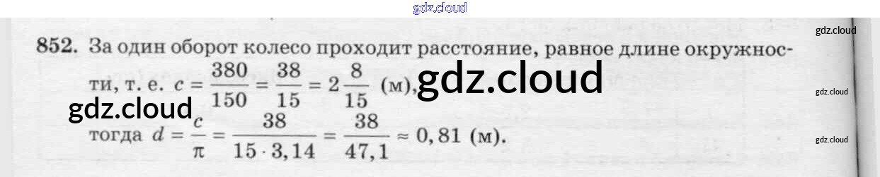 Ответ на задание 852 Учебник Математика за 6 (шестой) класс Виленкин, Жохов, Чесноков, Шварцбурд 2014