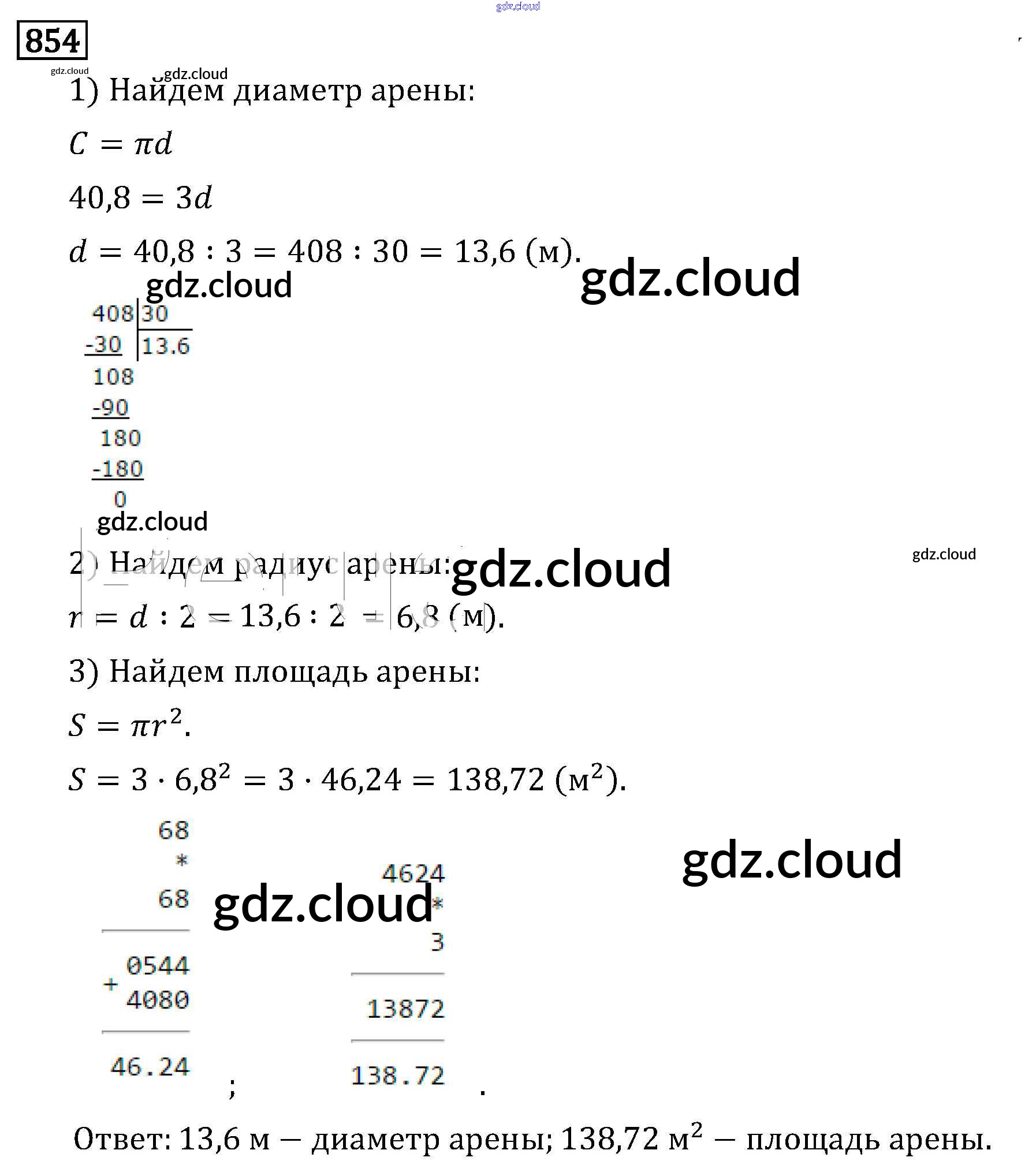 Ответ на задание 854 Учебник Математика за 6 (шестой) класс Виленкин, Жохов, Чесноков, Шварцбурд 2014