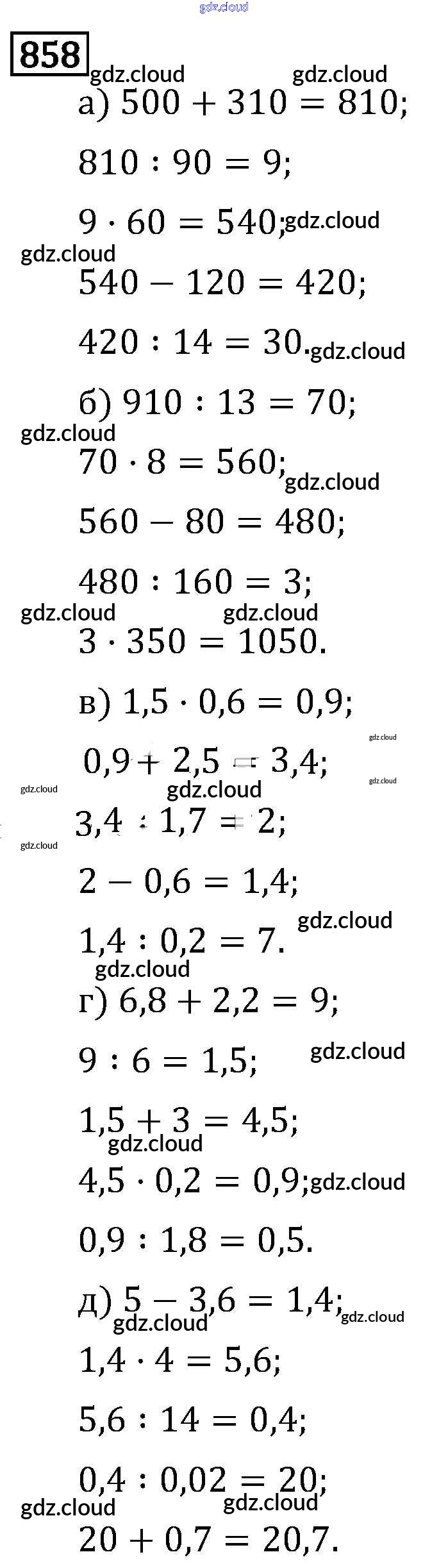 Ответ на задание 858 Учебник Математика за 6 (шестой) класс Виленкин, Жохов, Чесноков, Шварцбурд 2014