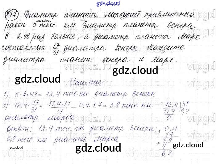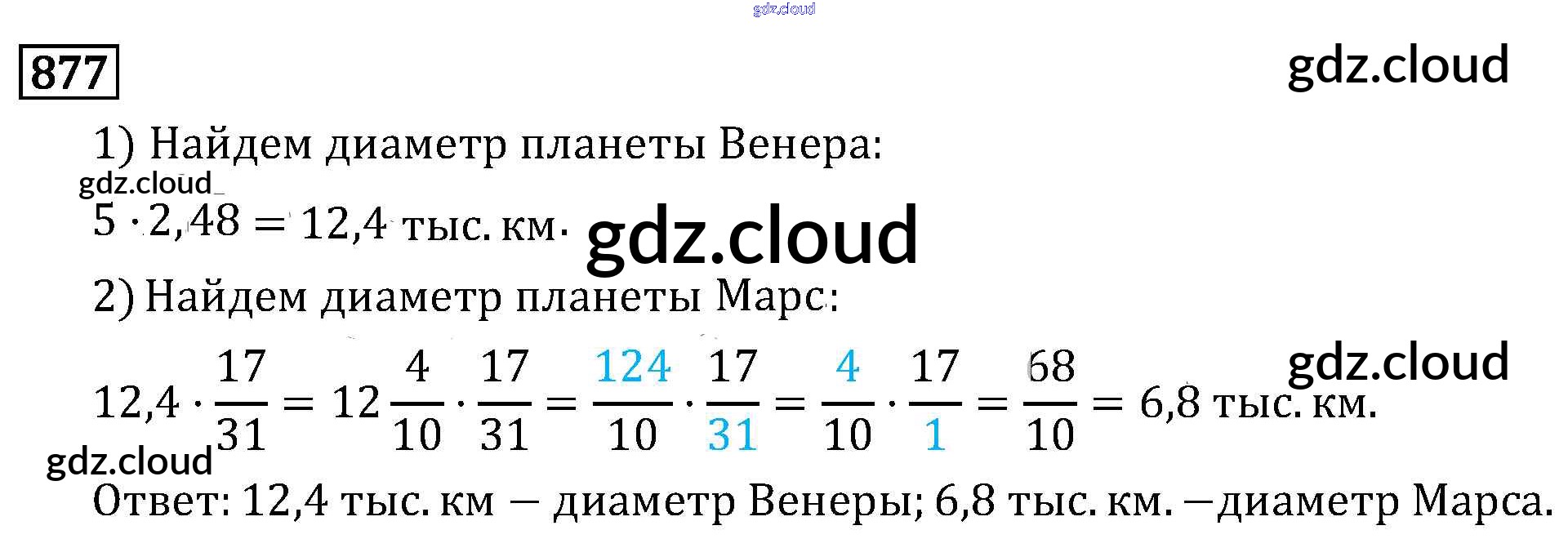 Ответ на задание 877 Учебник Математика за 6 (шестой) класс Виленкин, Жохов, Чесноков, Шварцбурд 2014