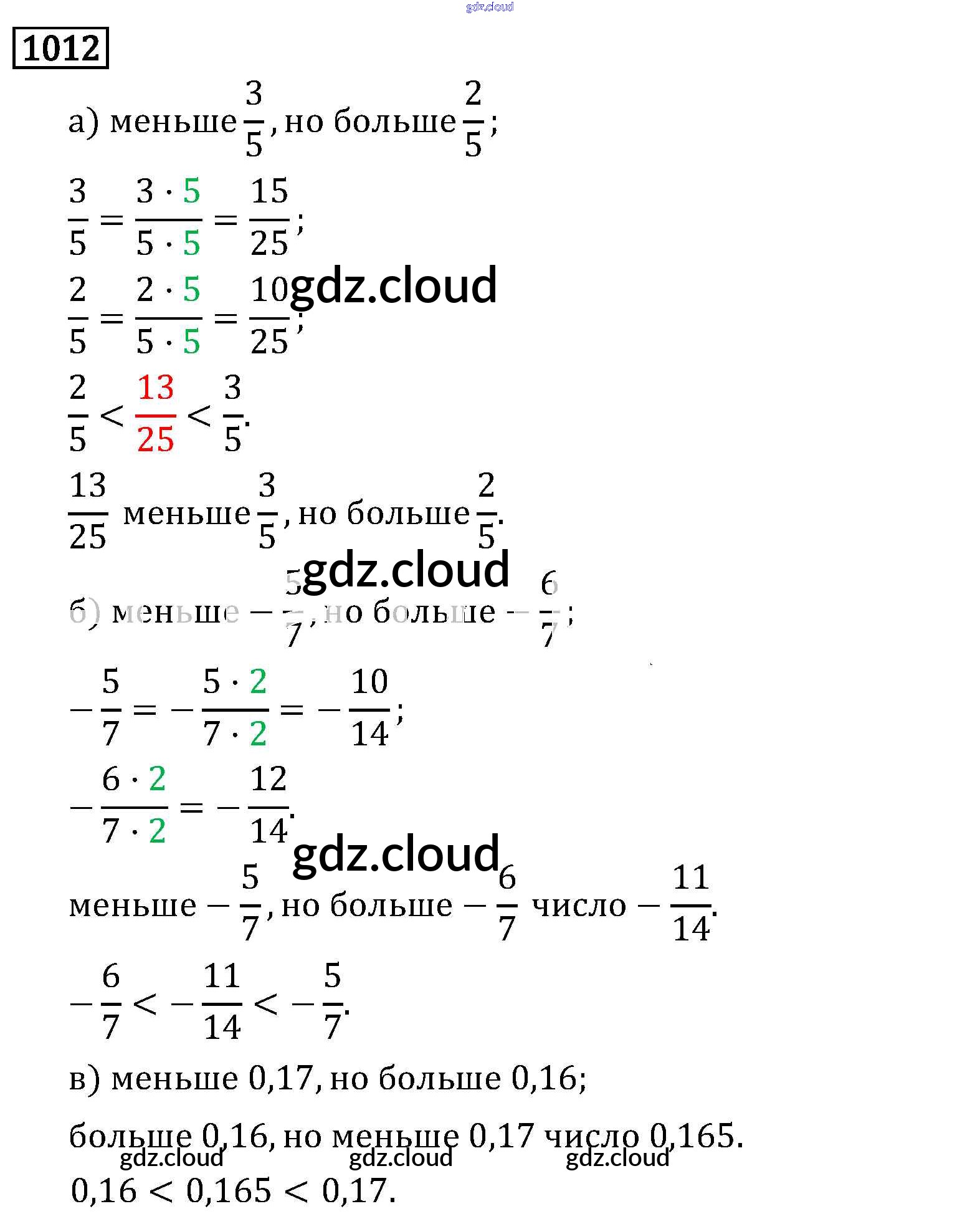 Ответ на задание 1012 Учебник Математика за 6 (шестой) класс Виленкин, Жохов, Чесноков, Шварцбурд 2014