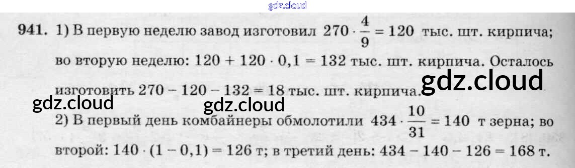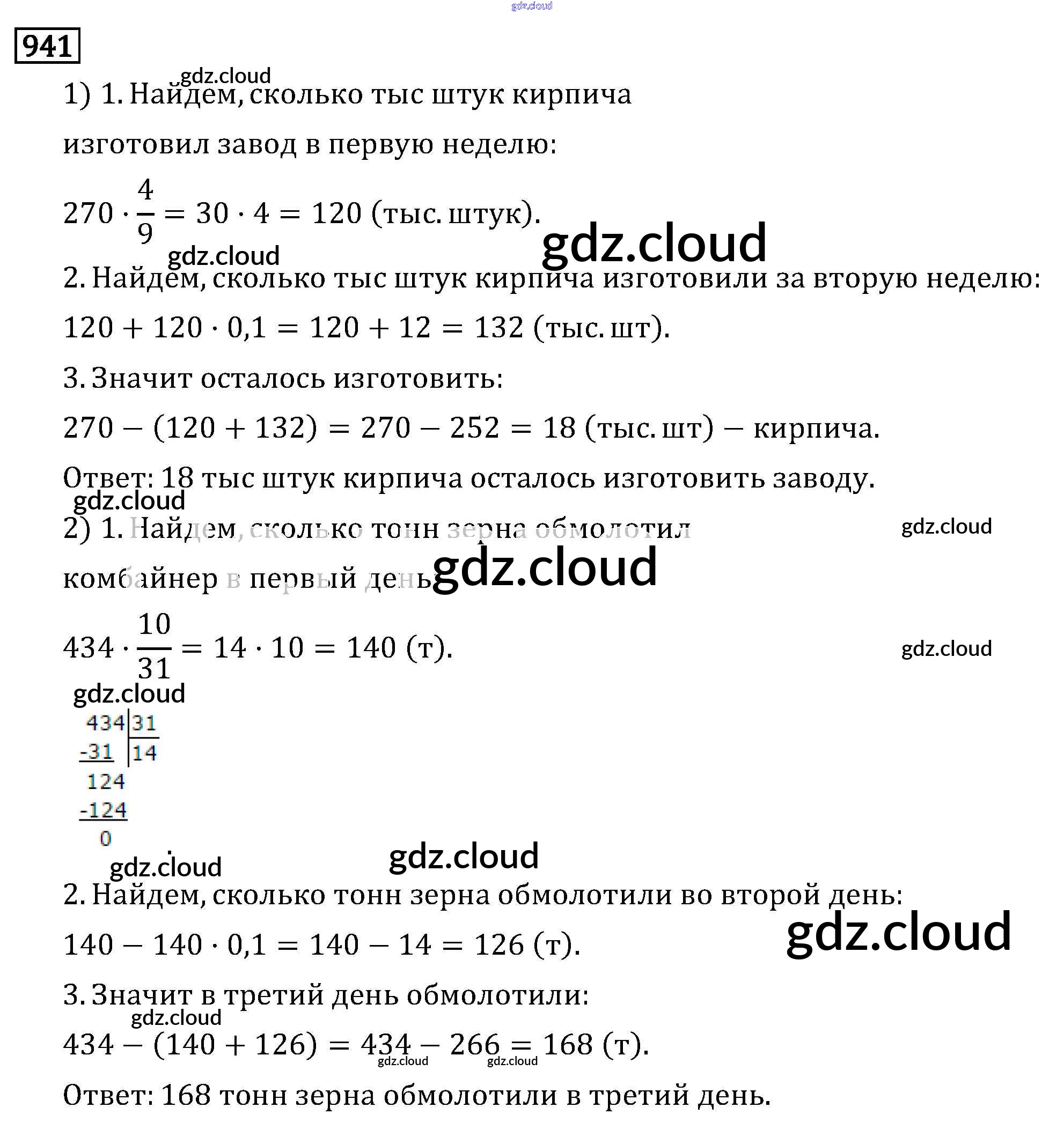 Ответ на задание 941 Учебник Математика за 6 (шестой) класс Виленкин, Жохов, Чесноков, Шварцбурд 2014