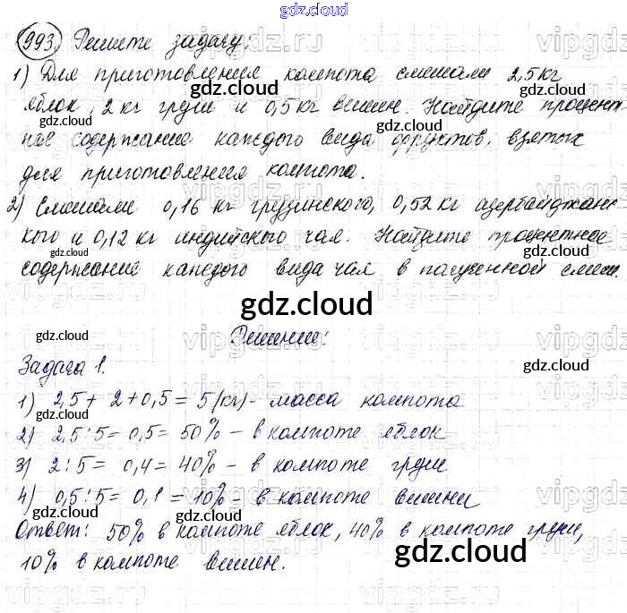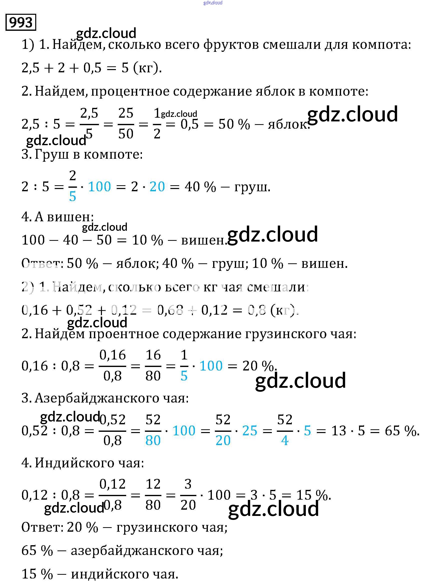 Ответ на задание 993 Учебник Математика за 6 (шестой) класс Виленкин, Жохов, Чесноков, Шварцбурд 2014