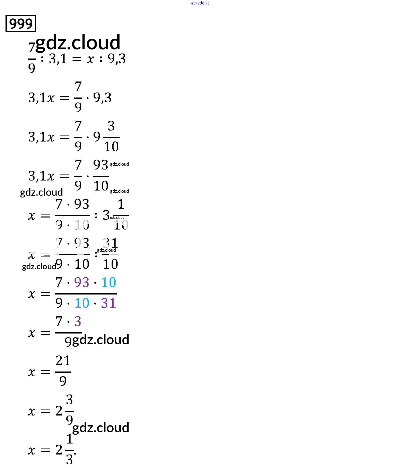 Ответ на задание 999 Учебник Математика за 6 (шестой) класс Виленкин, Жохов, Чесноков, Шварцбурд 2014