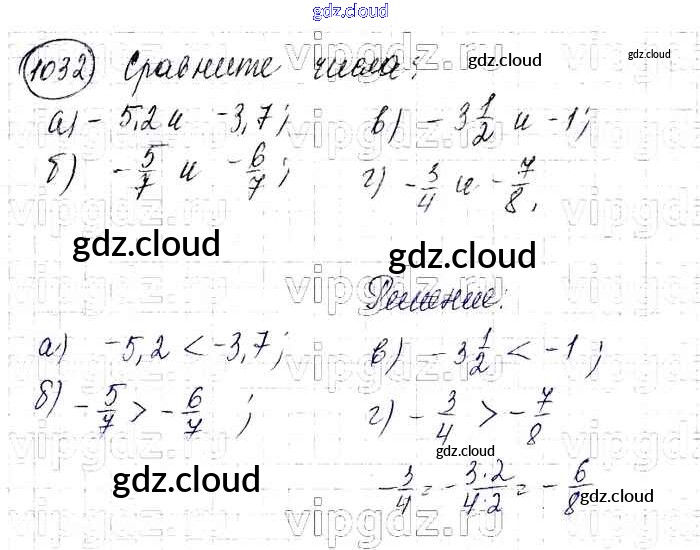 Ответ на задание 1032 Учебник Математика за 6 (шестой) класс Виленкин, Жохов, Чесноков, Шварцбурд 2014