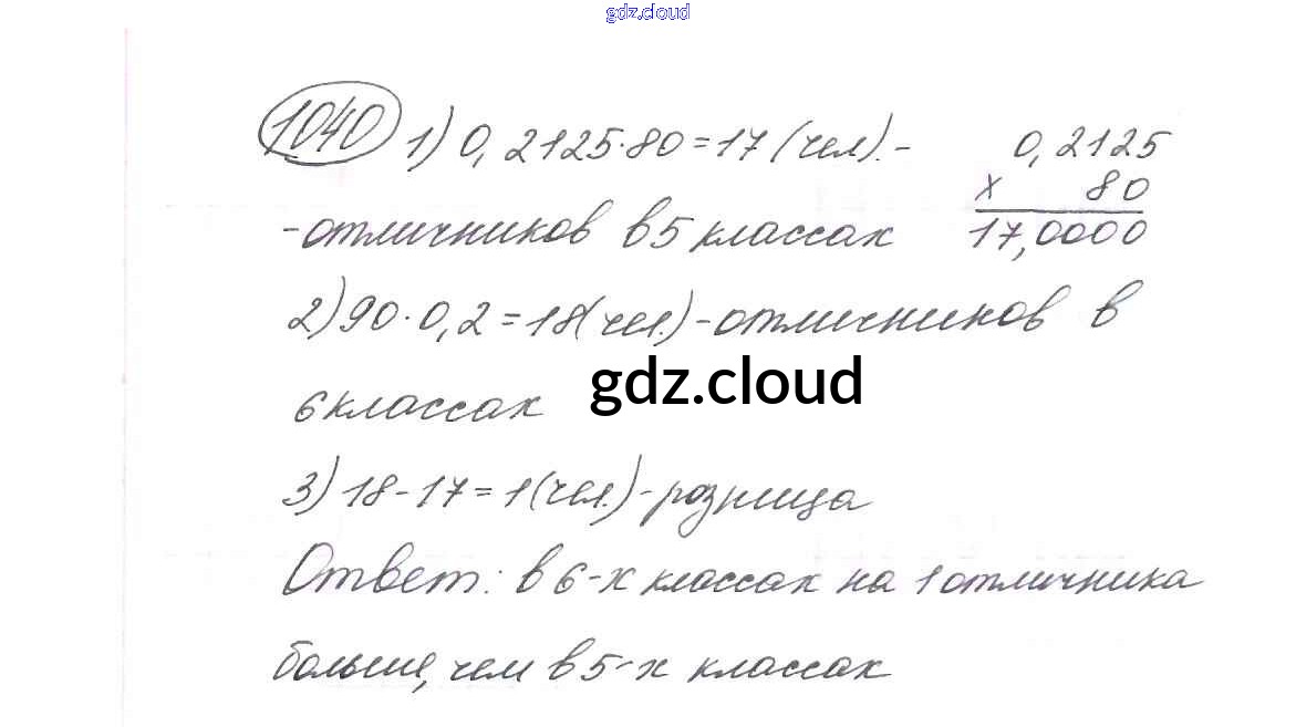 Ответ на задание 1040 Учебник Математика за 6 (шестой) класс Виленкин, Жохов, Чесноков, Шварцбурд 2014