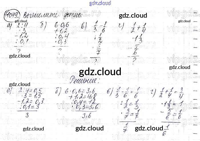 Ответ на задание 1049 Учебник Математика за 6 (шестой) класс Виленкин, Жохов, Чесноков, Шварцбурд 2014
