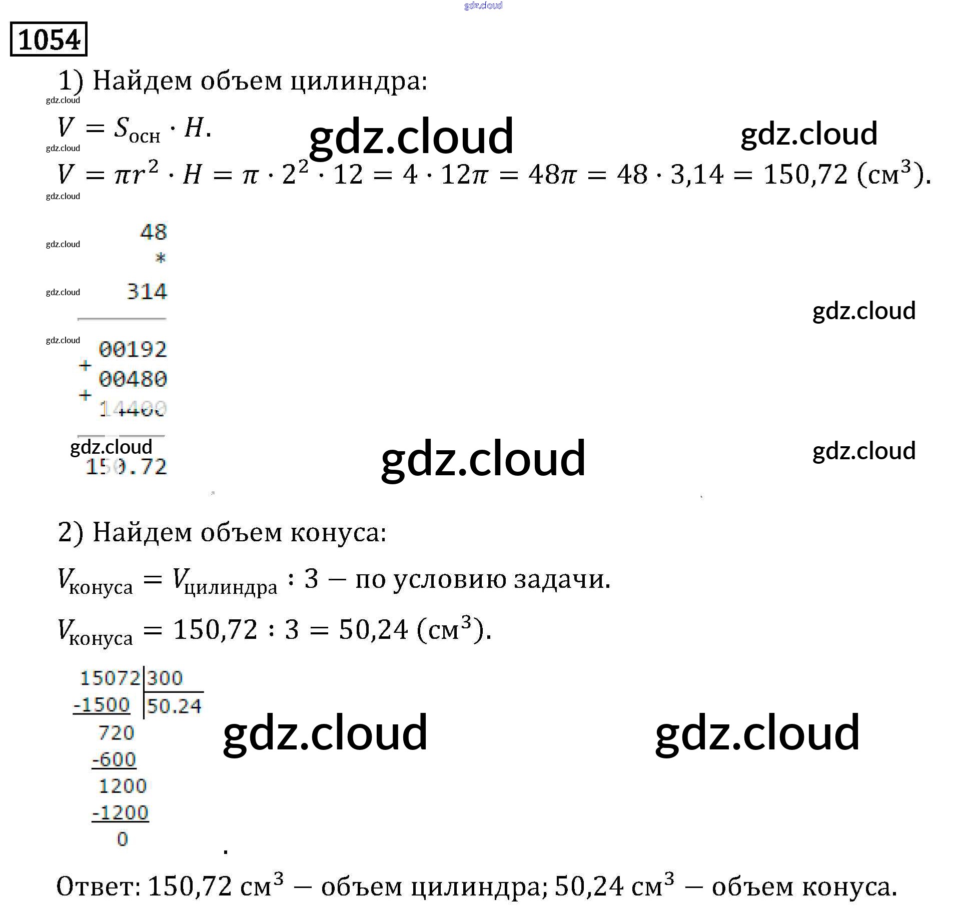 Ответ на задание 1054 Учебник Математика за 6 (шестой) класс Виленкин, Жохов, Чесноков, Шварцбурд 2014
