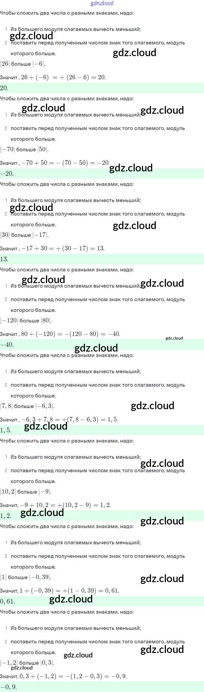 §6. Сложение и вычитание положительных и отрицательных чисел Ответы к Главе 2 по Математике 6 класс Учебник Виленкин Мнемозина