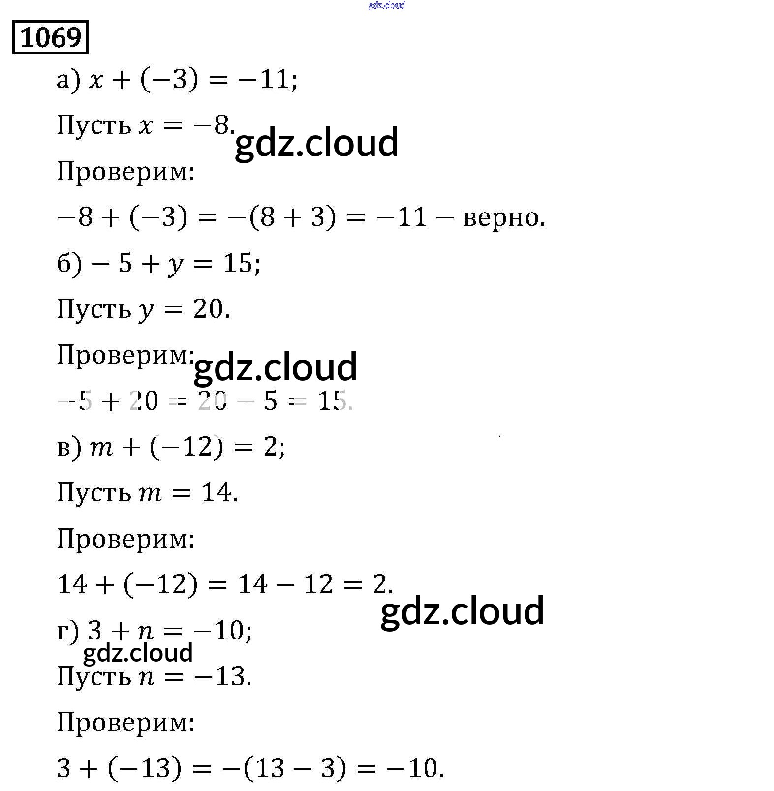 Ответ на задание 1069 Учебник Математика за 6 (шестой) класс Виленкин, Жохов, Чесноков, Шварцбурд 2014