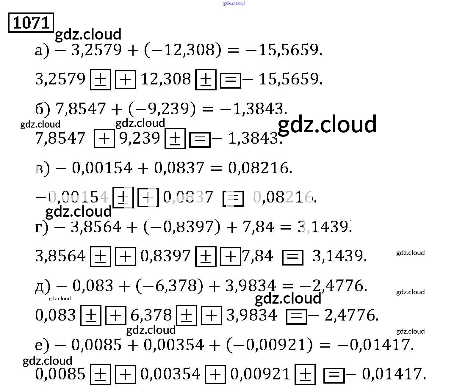 Ответ на задание 1071 Учебник Математика за 6 (шестой) класс Виленкин, Жохов, Чесноков, Шварцбурд 2014