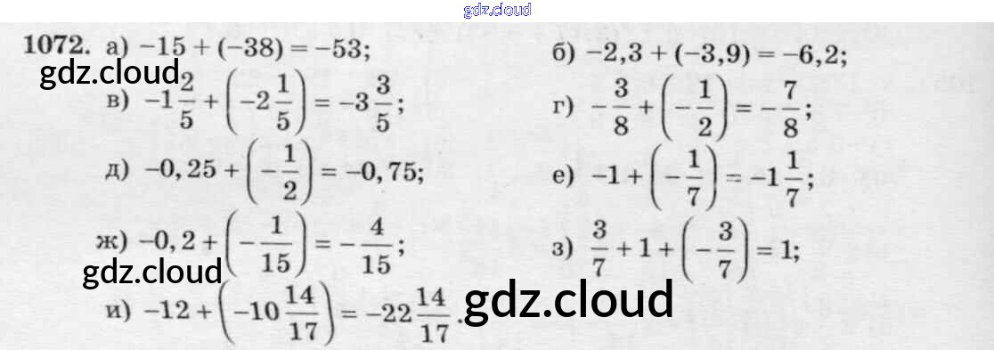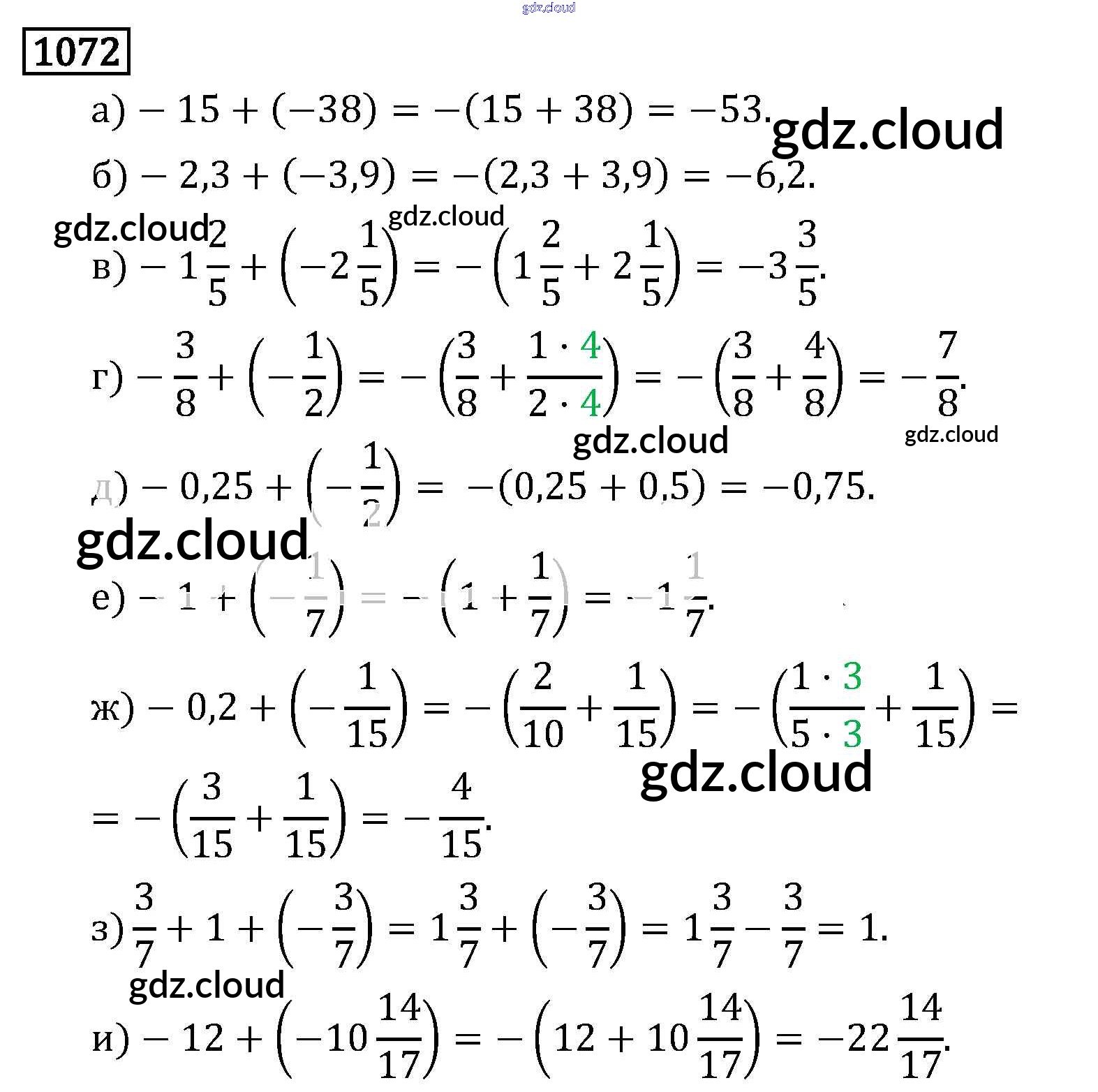 Ответ на задание 1072 Учебник Математика за 6 (шестой) класс Виленкин, Жохов, Чесноков, Шварцбурд 2014