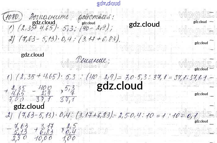Ответ на задание 1080 Учебник Математика за 6 (шестой) класс Виленкин, Жохов, Чесноков, Шварцбурд 2014
