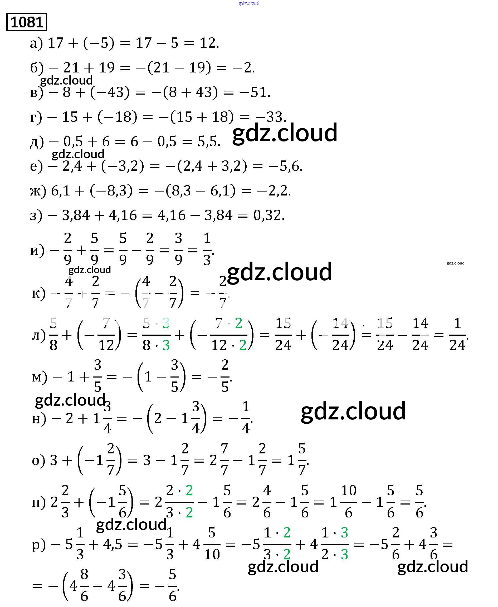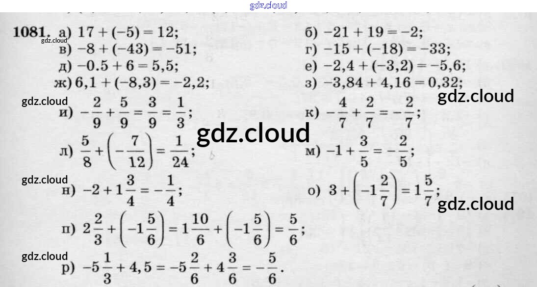 Ответ на задание 1081 Учебник Математика за 6 (шестой) класс Виленкин, Жохов, Чесноков, Шварцбурд 2014