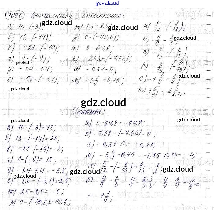 Ответ на задание 1091 Учебник Математика за 6 (шестой) класс Виленкин, Жохов, Чесноков, Шварцбурд 2014