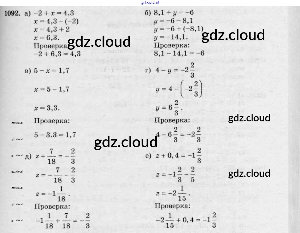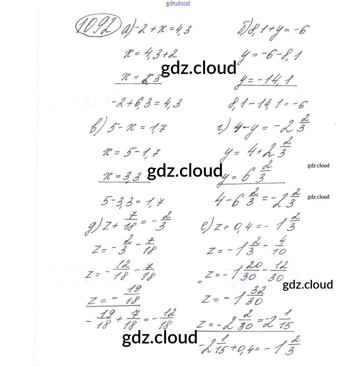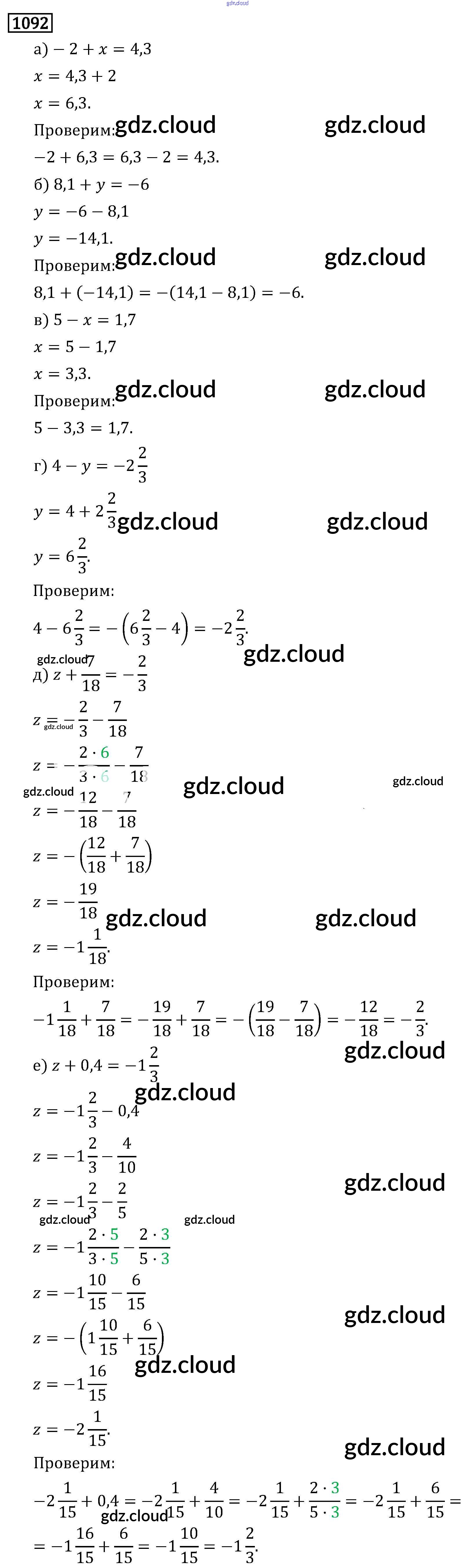Ответ на задание 1092 Учебник Математика за 6 (шестой) класс Виленкин, Жохов, Чесноков, Шварцбурд 2014