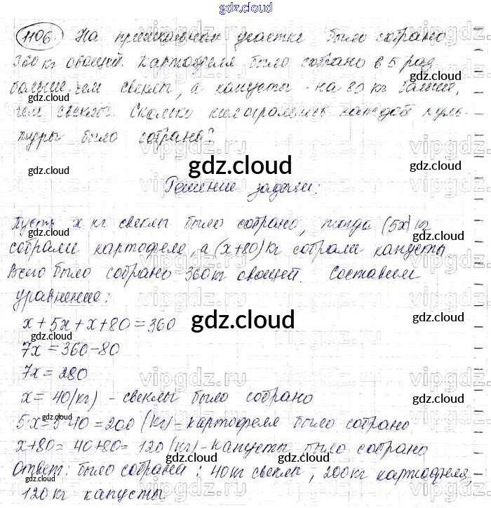 Ответ на задание 1106 Учебник Математика за 6 (шестой) класс Виленкин, Жохов, Чесноков, Шварцбурд 2014
