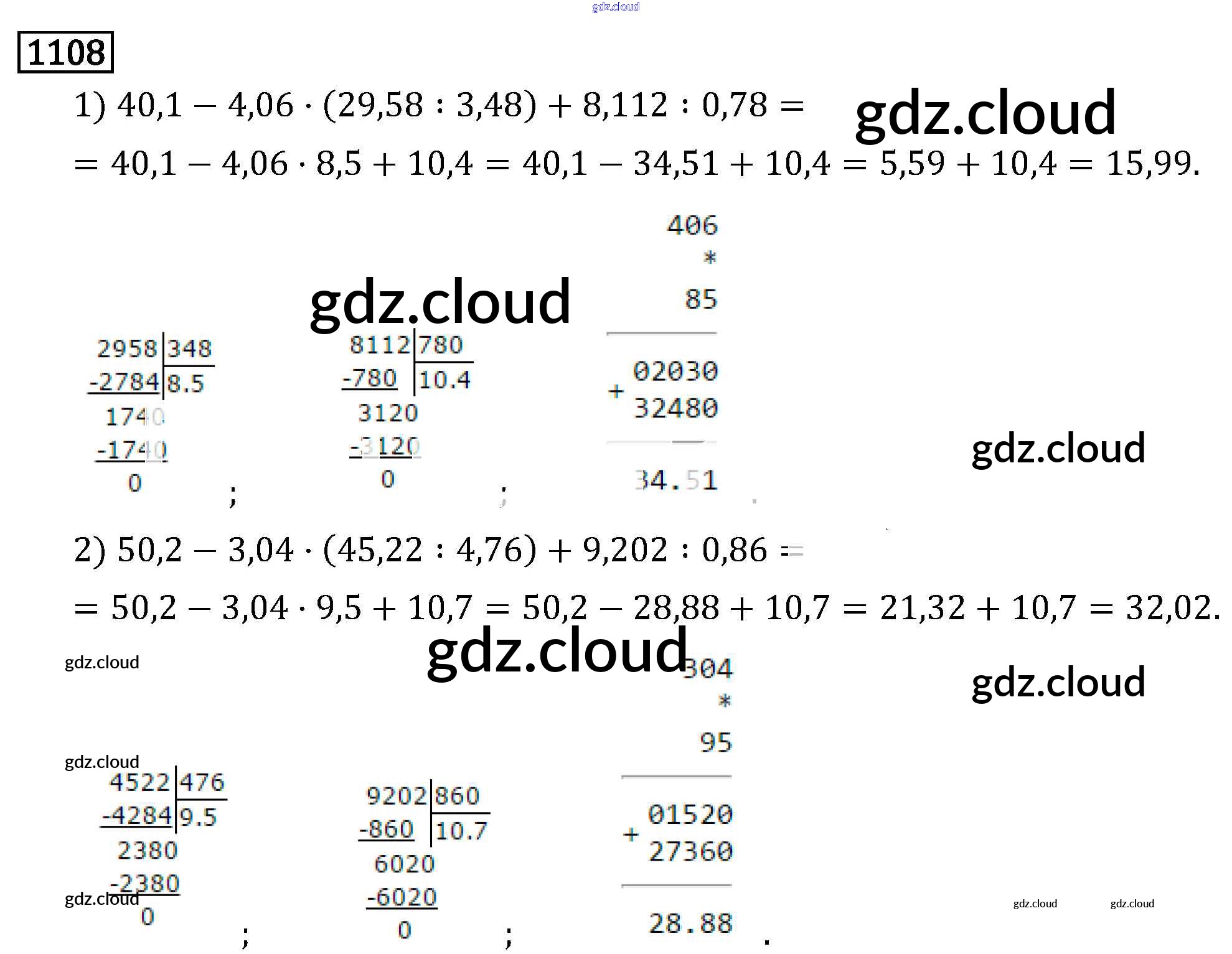 Ответ на задание 1108 Учебник Математика за 6 (шестой) класс Виленкин, Жохов, Чесноков, Шварцбурд 2014