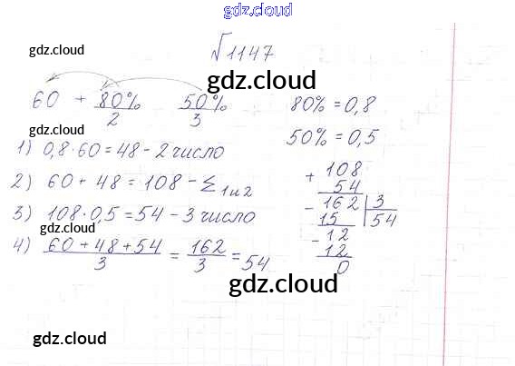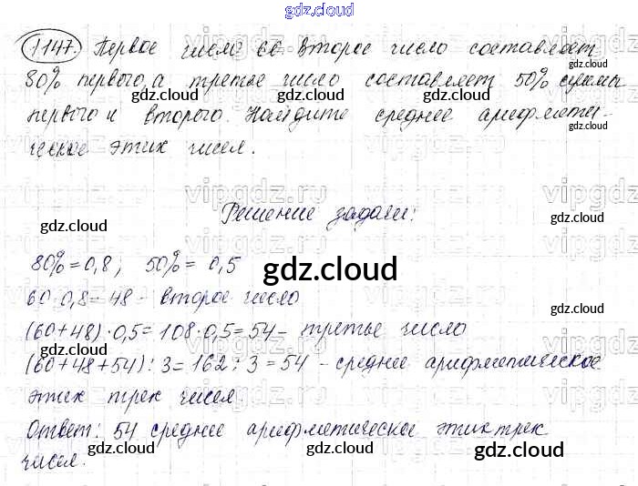 Ответ на задание 1147 Учебник Математика за 6 (шестой) класс Виленкин, Жохов, Чесноков, Шварцбурд 2014