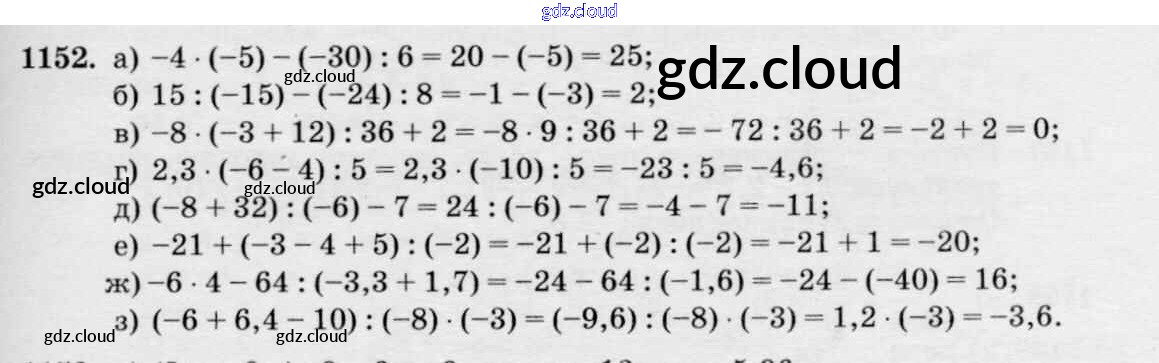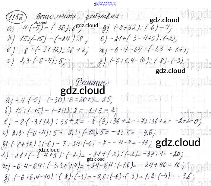 Ответ на задание 1152 Учебник Математика за 6 (шестой) класс Виленкин, Жохов, Чесноков, Шварцбурд 2014