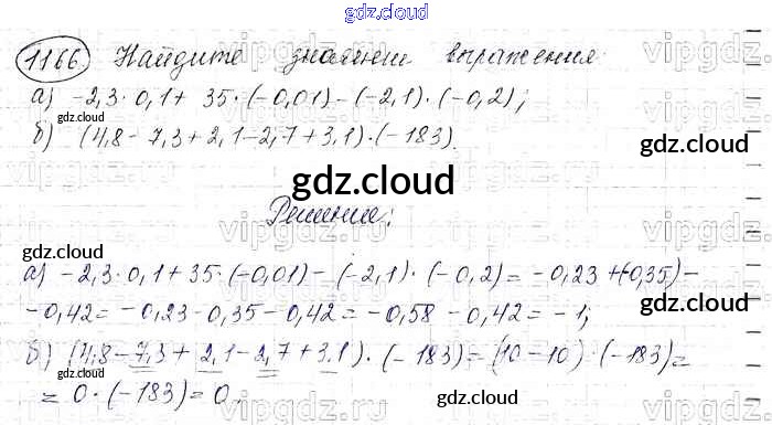 Ответ на задание 1166 Учебник Математика за 6 (шестой) класс Виленкин, Жохов, Чесноков, Шварцбурд 2014