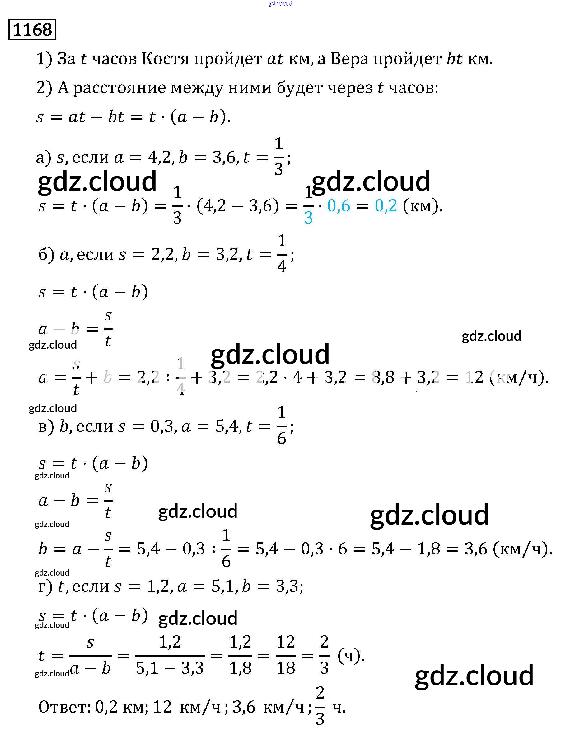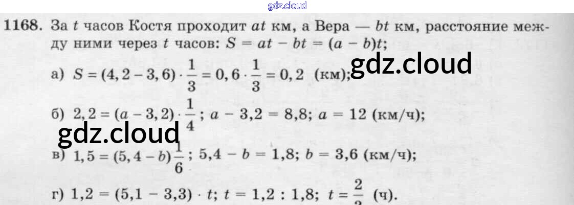 Ответ на задание 1168 Учебник Математика за 6 (шестой) класс Виленкин, Жохов, Чесноков, Шварцбурд 2014