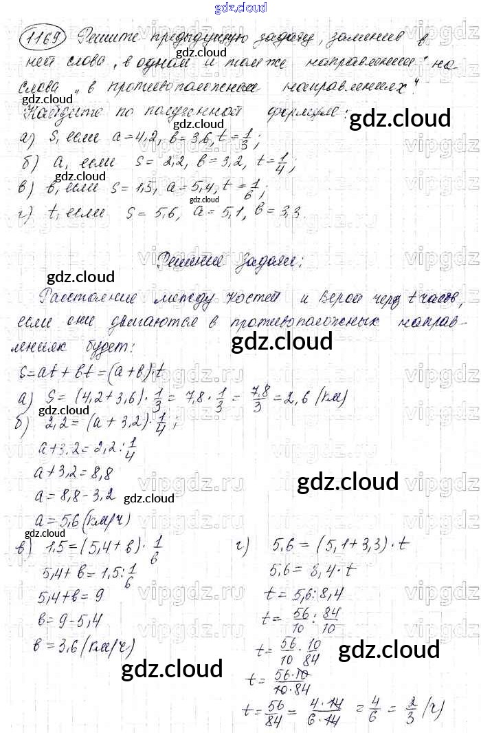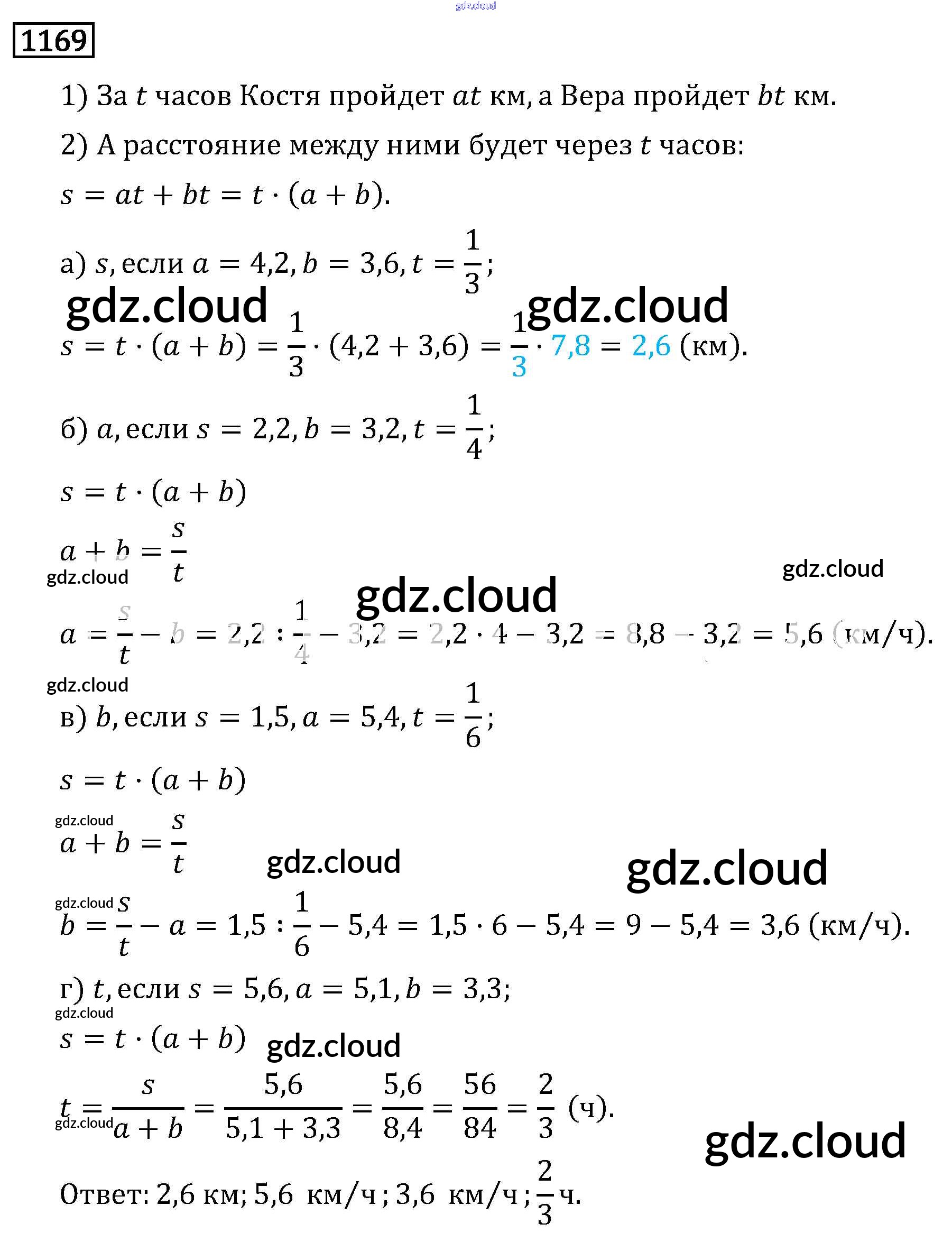 Ответ на задание 1169 Учебник Математика за 6 (шестой) класс Виленкин, Жохов, Чесноков, Шварцбурд 2014