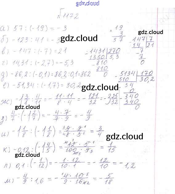Ответ на задание 1172 Учебник Математика за 6 (шестой) класс Виленкин, Жохов, Чесноков, Шварцбурд 2014