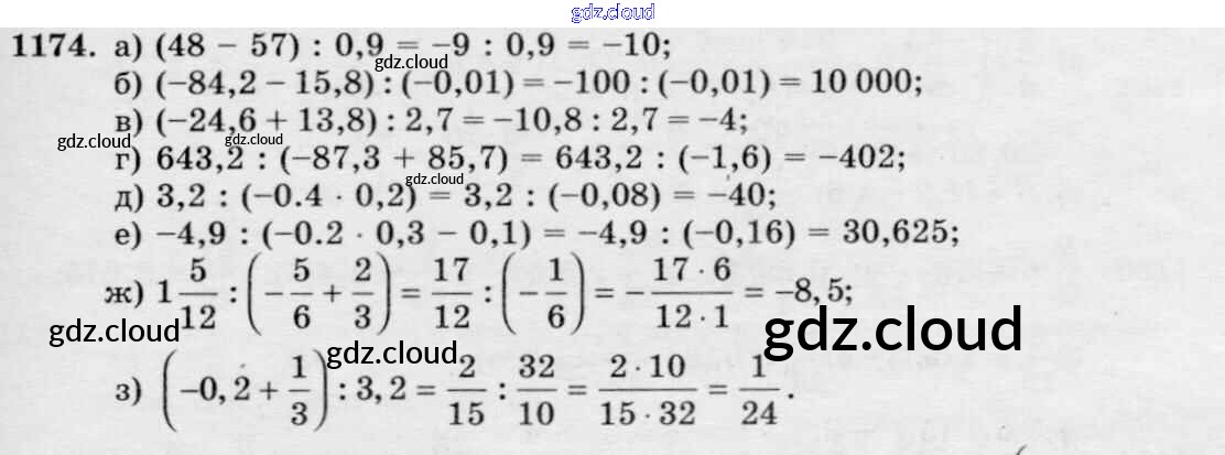 Ответ на задание 1174 Учебник Математика за 6 (шестой) класс Виленкин, Жохов, Чесноков, Шварцбурд 2014