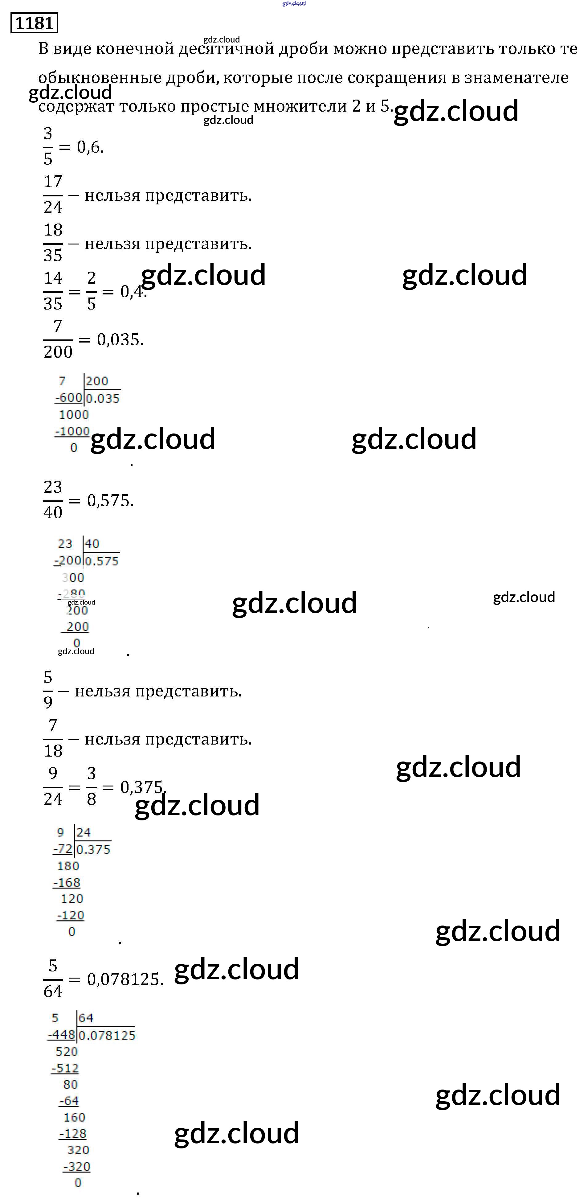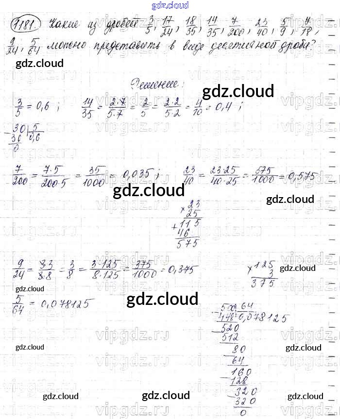 Ответ на задание 1181 Учебник Математика за 6 (шестой) класс Виленкин, Жохов, Чесноков, Шварцбурд 2014