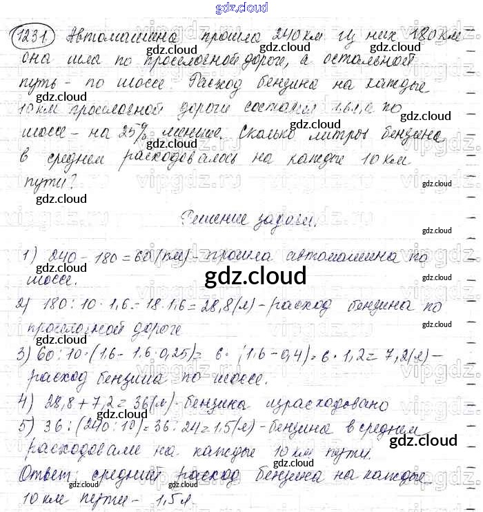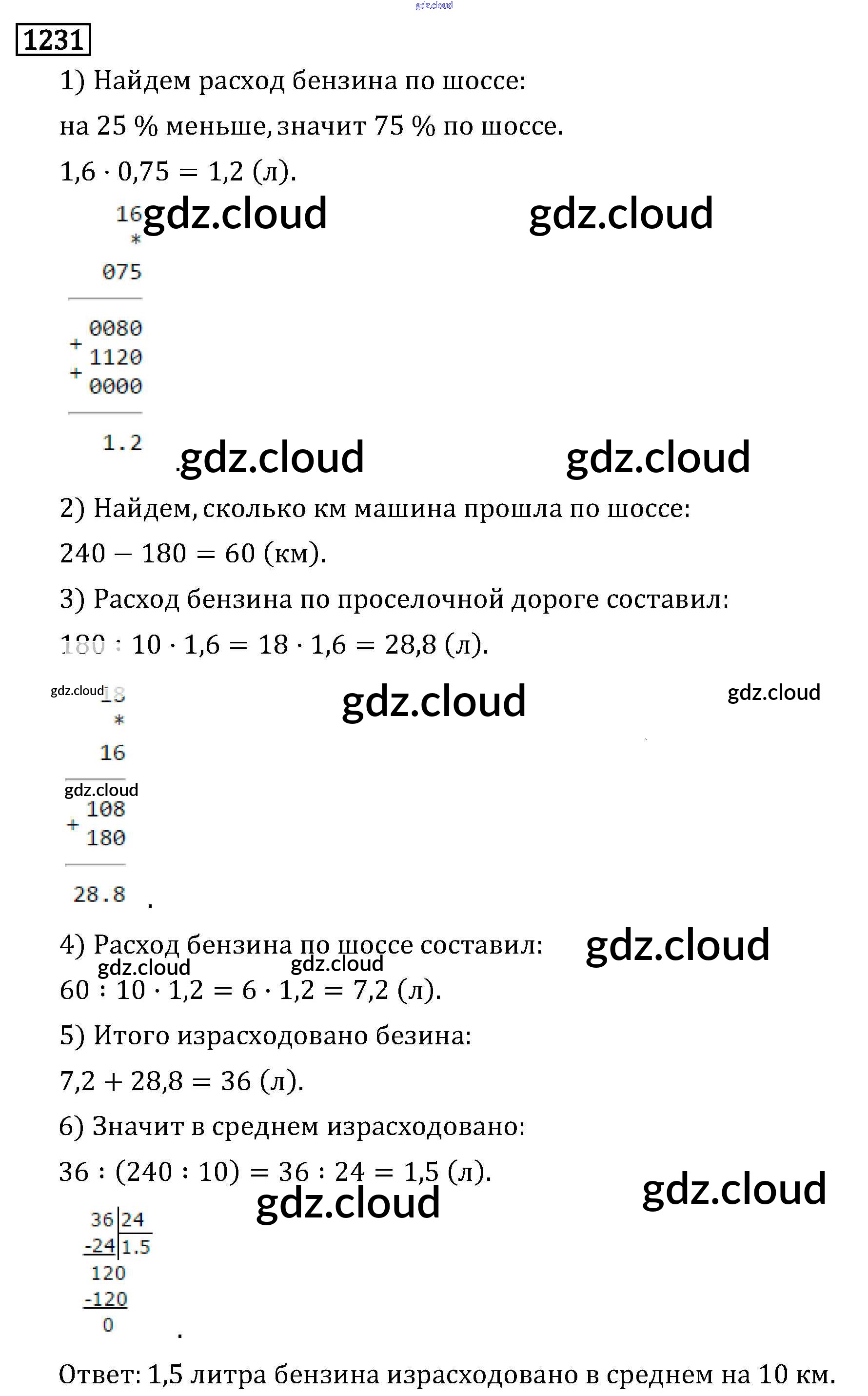 Ответ на задание 1231 Учебник Математика за 6 (шестой) класс Виленкин, Жохов, Чесноков, Шварцбурд 2014