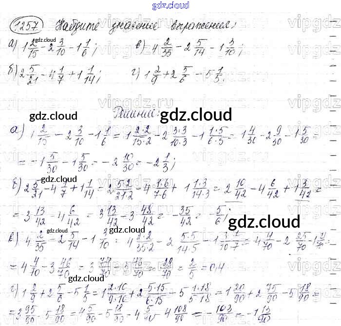 Ответ на задание 1257 Учебник Математика за 6 (шестой) класс Виленкин, Жохов, Чесноков, Шварцбурд 2014