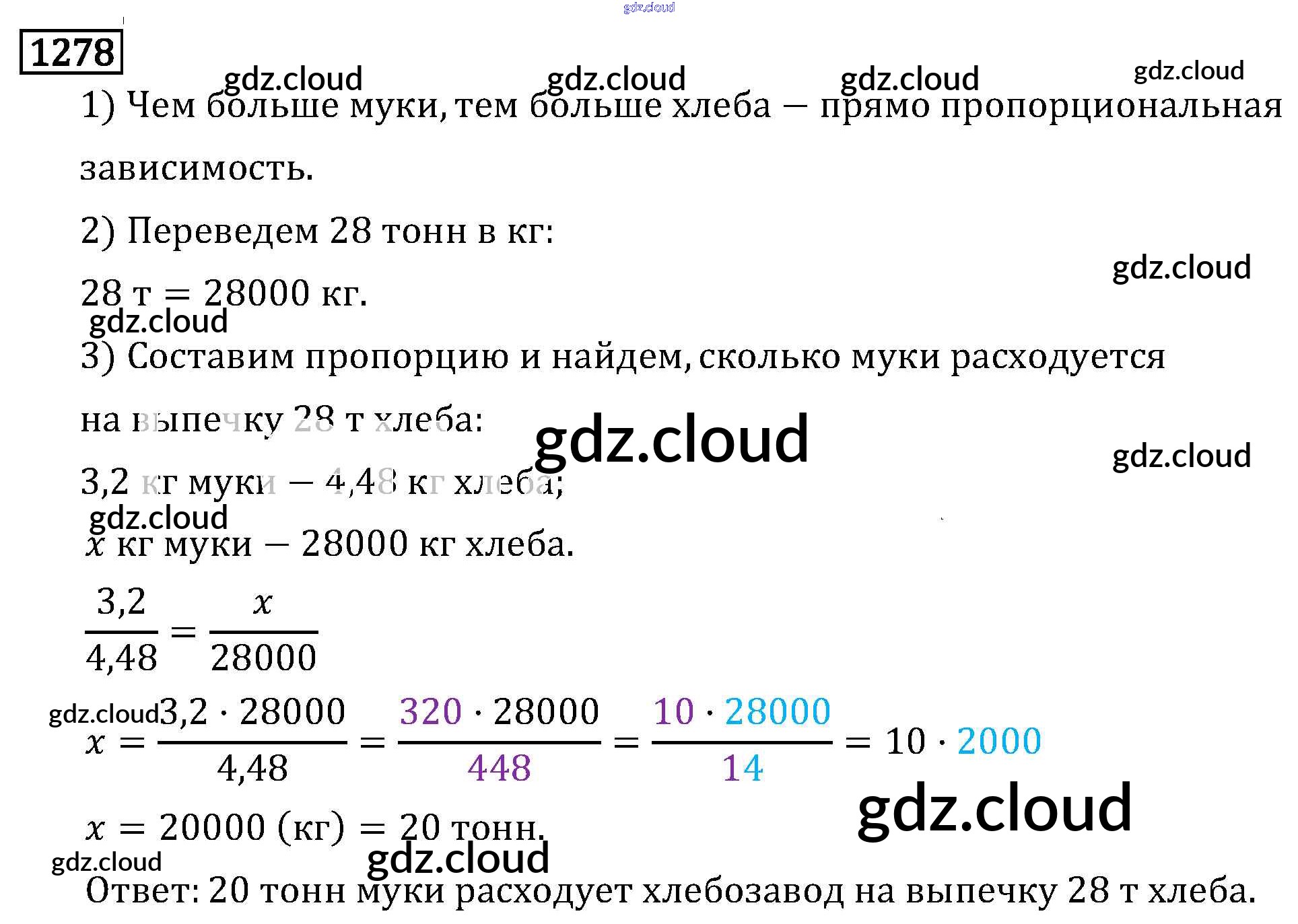 Ответ на задание 1278 Учебник Математика за 6 (шестой) класс Виленкин, Жохов, Чесноков, Шварцбурд 2014