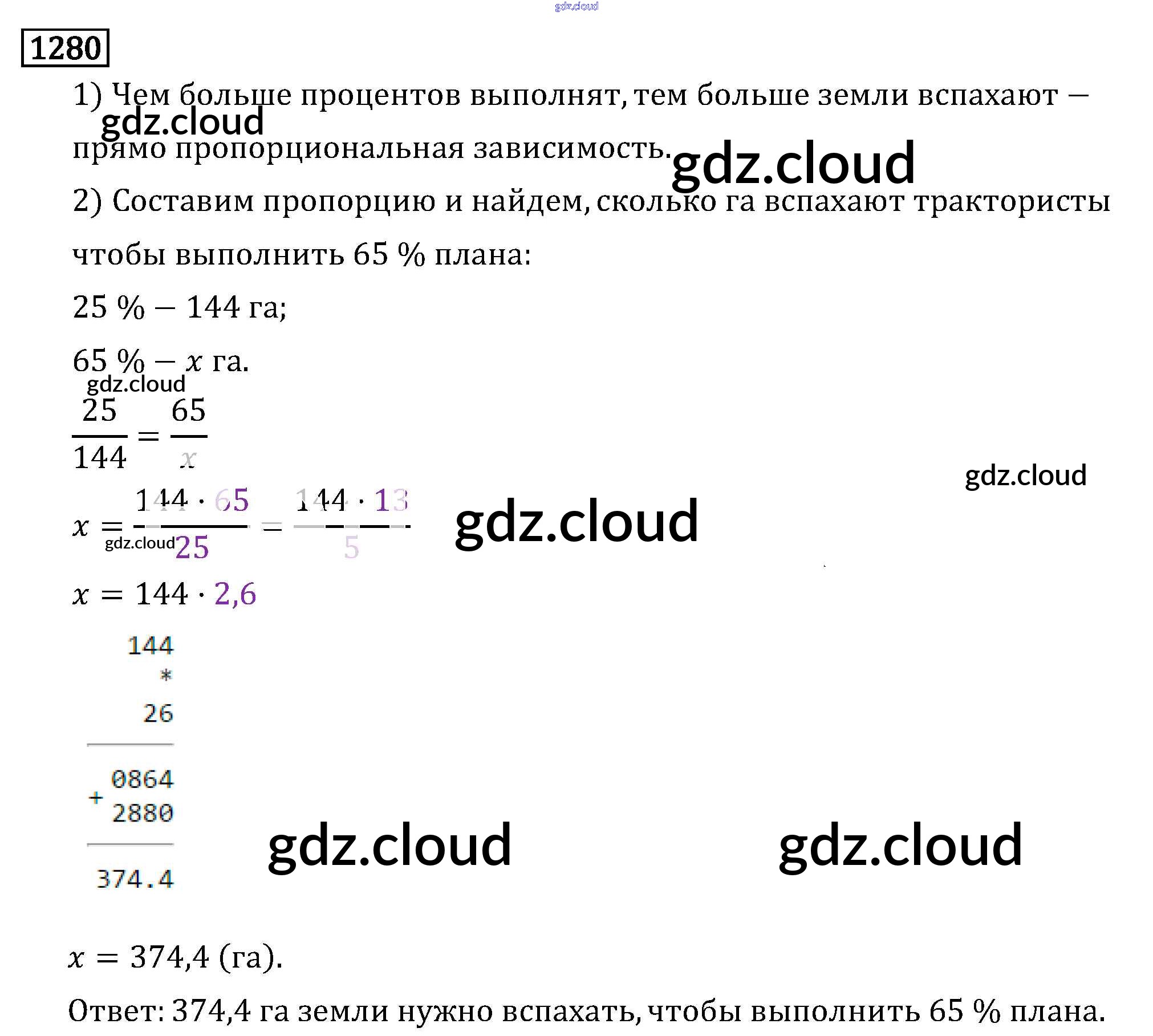 Ответ на задание 1280 Учебник Математика за 6 (шестой) класс Виленкин, Жохов, Чесноков, Шварцбурд 2014