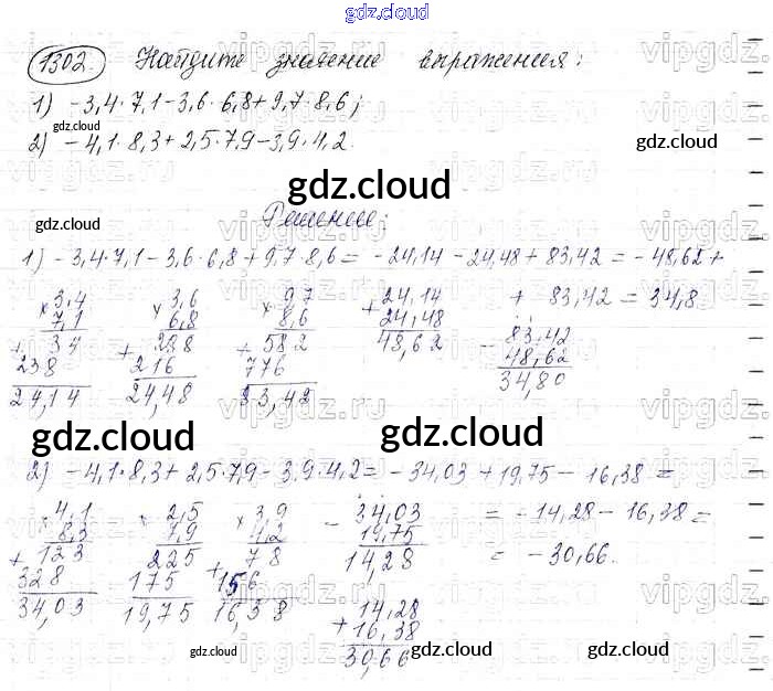 Ответ на задание 1302 Учебник Математика за 6 (шестой) класс Виленкин, Жохов, Чесноков, Шварцбурд 2014