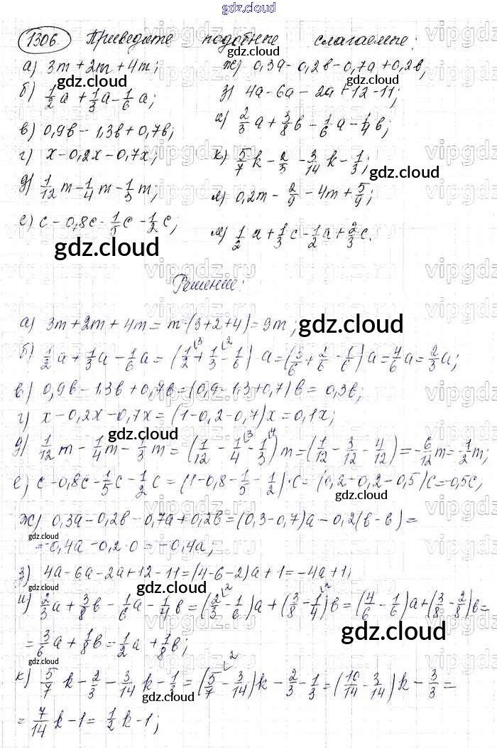 Ответ на задание 1306 Учебник Математика за 6 (шестой) класс Виленкин, Жохов, Чесноков, Шварцбурд 2014