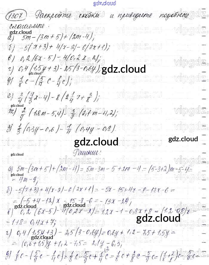 Ответ на задание 1307 Учебник Математика за 6 (шестой) класс Виленкин, Жохов, Чесноков, Шварцбурд 2014