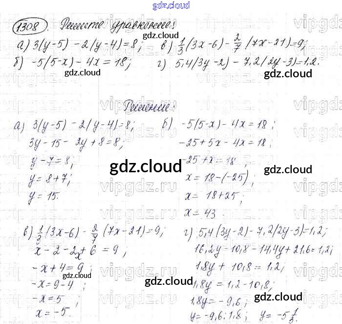 Ответ на задание 1308 Учебник Математика за 6 (шестой) класс Виленкин, Жохов, Чесноков, Шварцбурд 2014