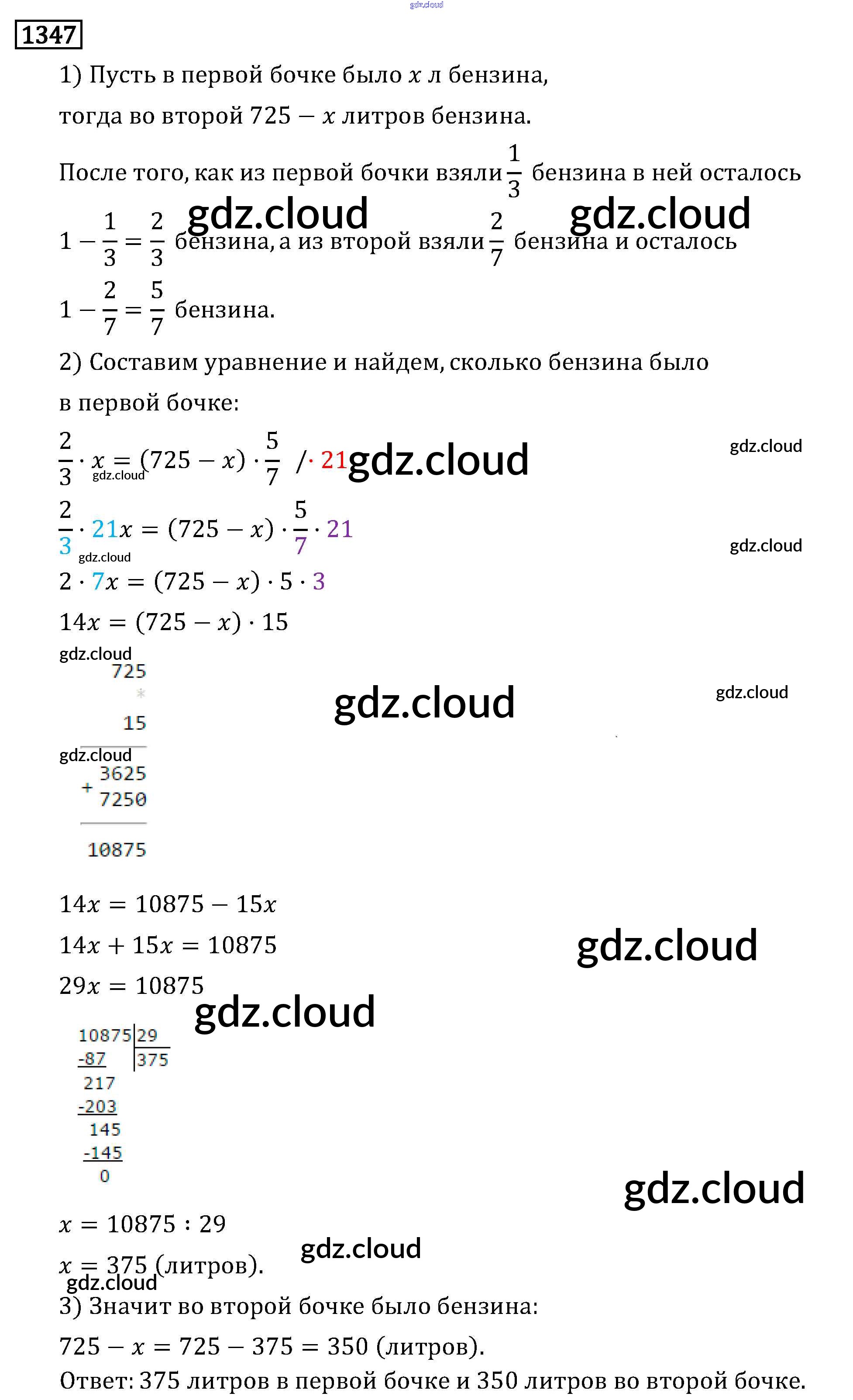 Ответ на задание 1347 Учебник Математика за 6 (шестой) класс Виленкин, Жохов, Чесноков, Шварцбурд 2014