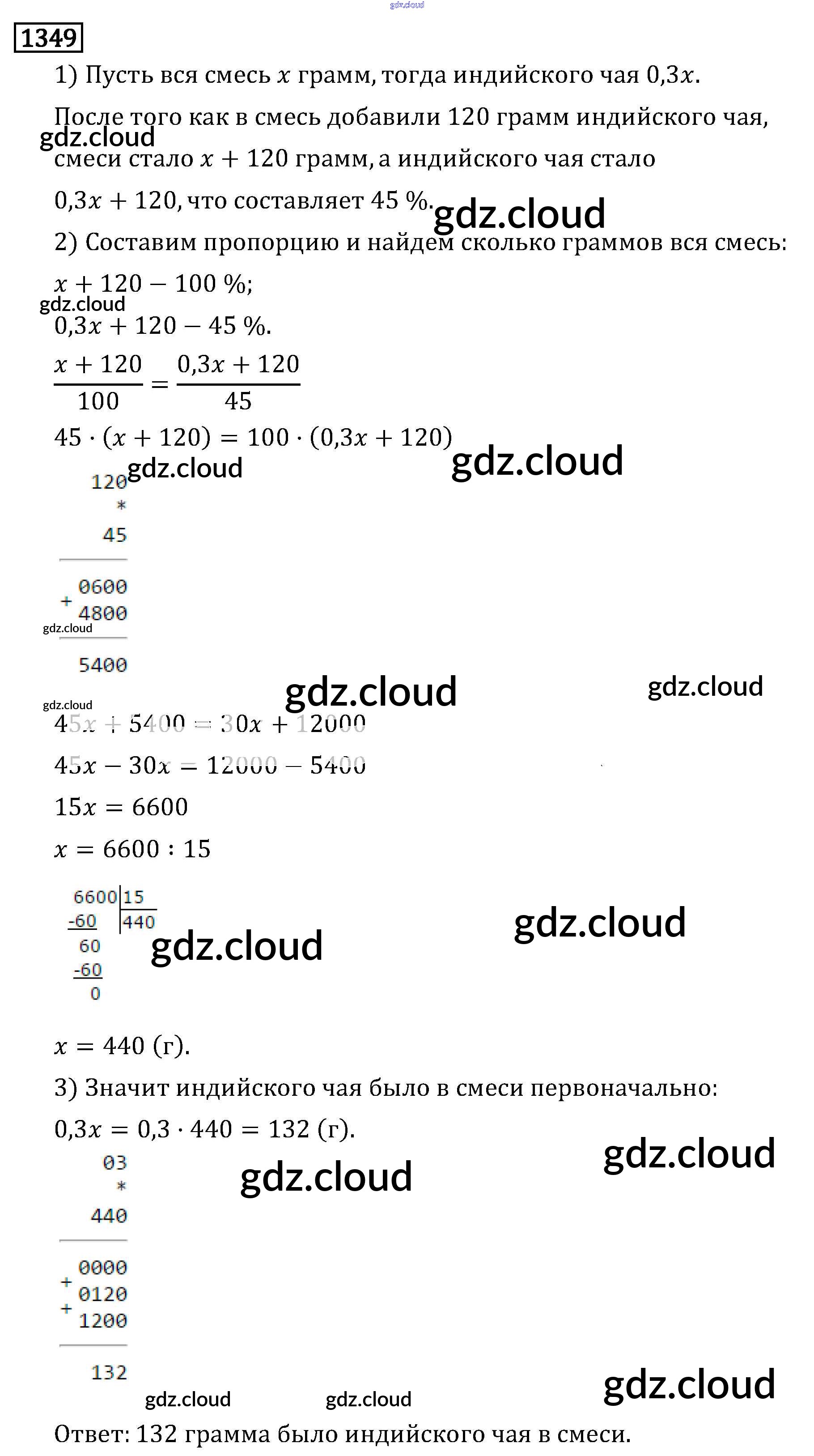 Ответ на задание 1349 Учебник Математика за 6 (шестой) класс Виленкин, Жохов, Чесноков, Шварцбурд 2014
