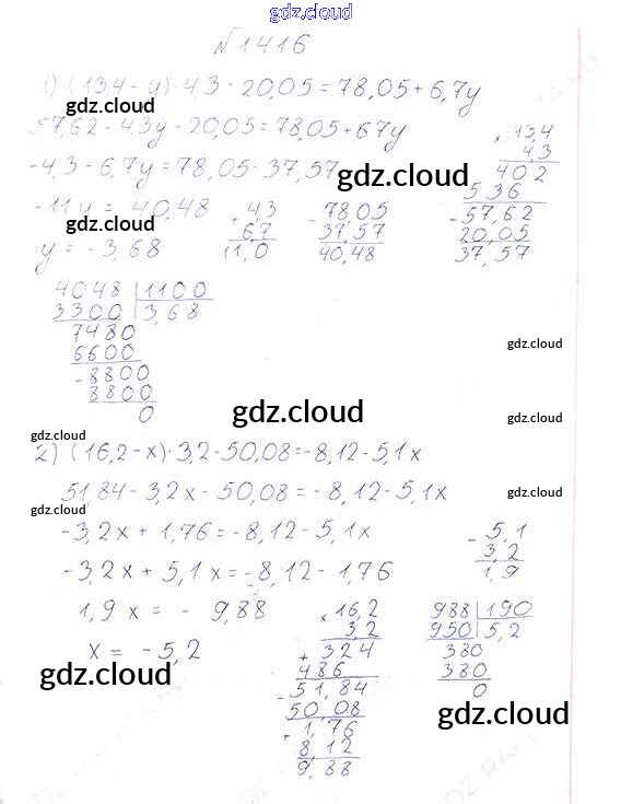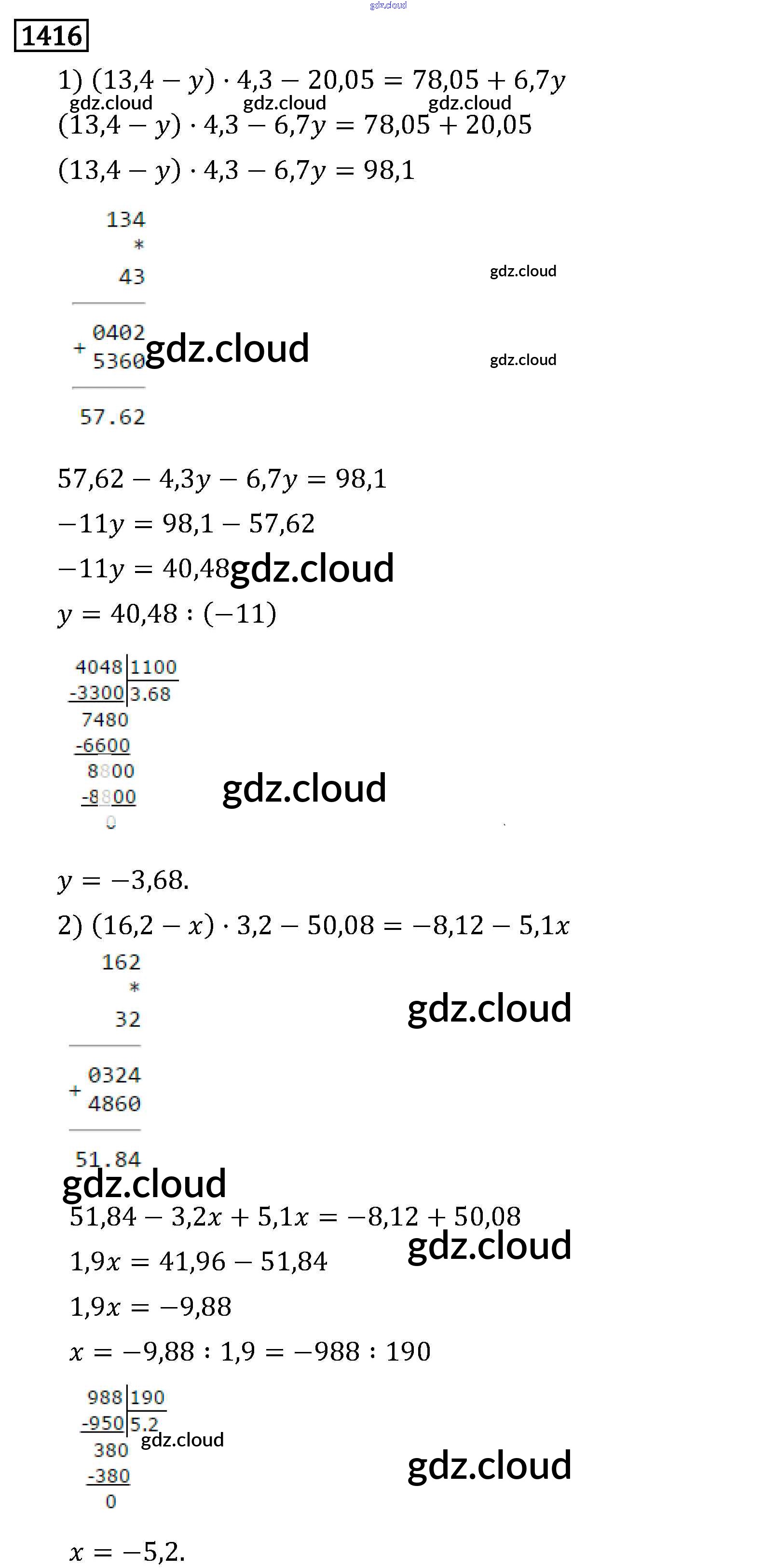 Ответ на задание 1416 Учебник Математика за 6 (шестой) класс Виленкин, Жохов, Чесноков, Шварцбурд 2014