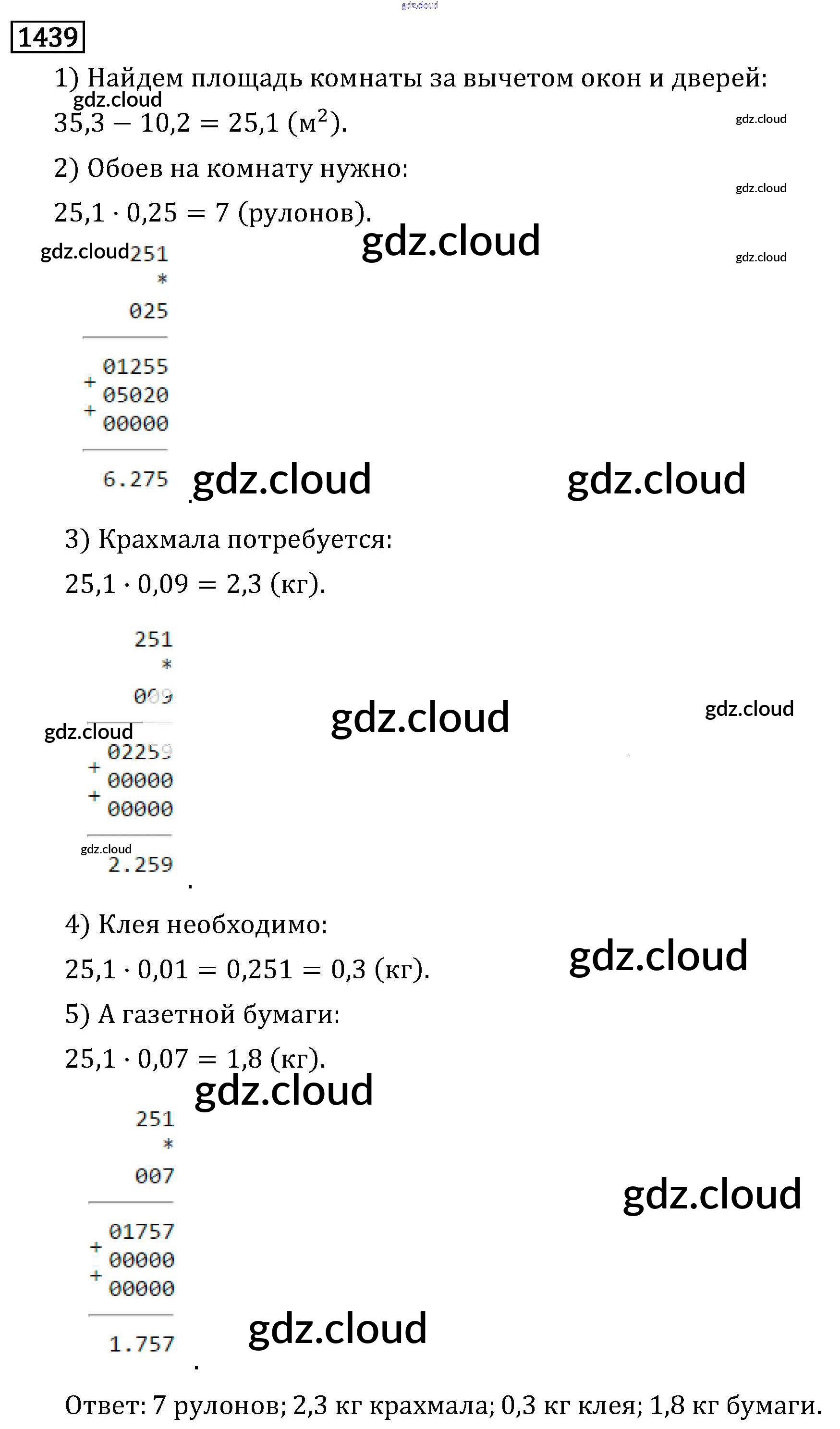Ответ на задание 1439 Учебник Математика за 6 (шестой) класс Виленкин, Жохов, Чесноков, Шварцбурд 2014