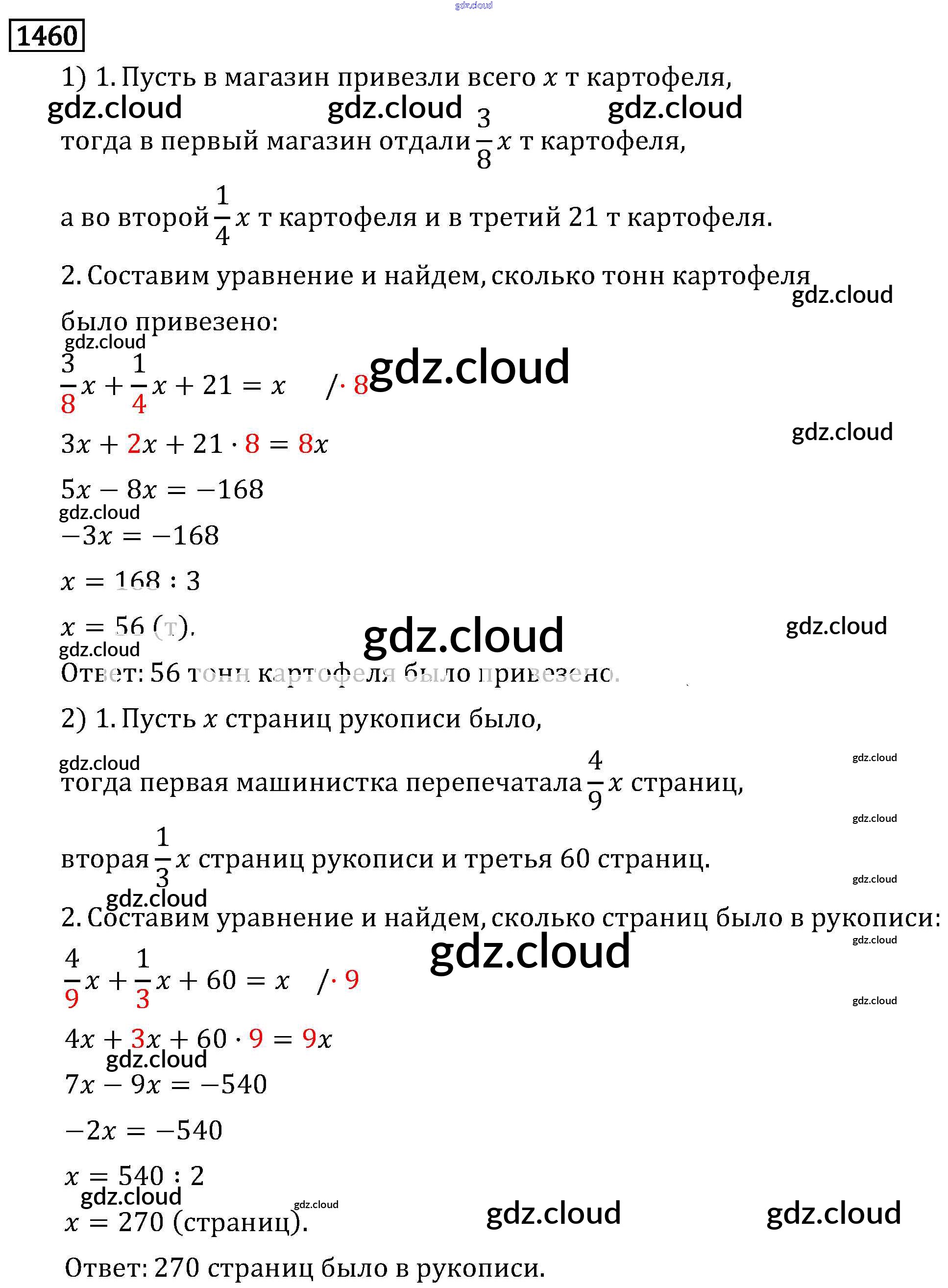 Ответ на задание 1460 Учебник Математика за 6 (шестой) класс Виленкин, Жохов, Чесноков, Шварцбурд 2014